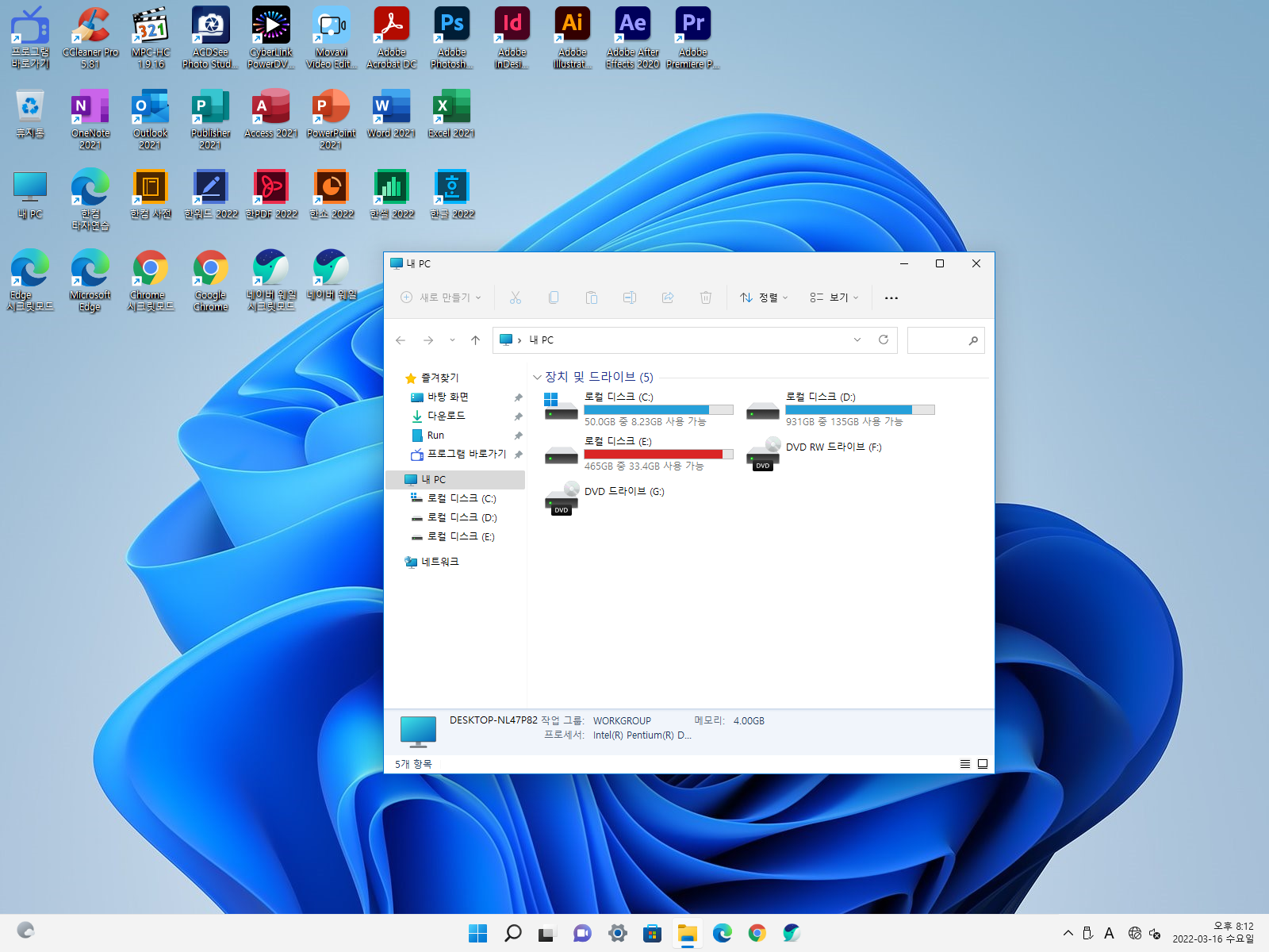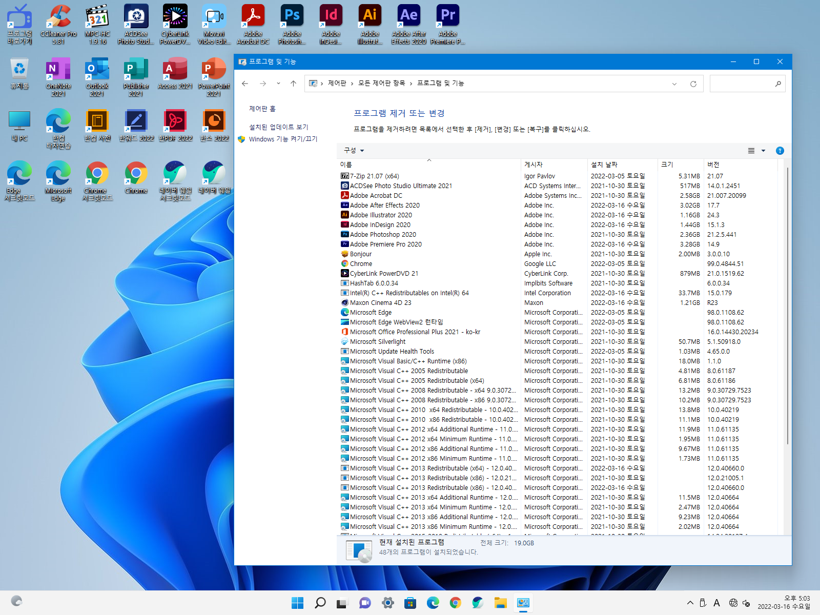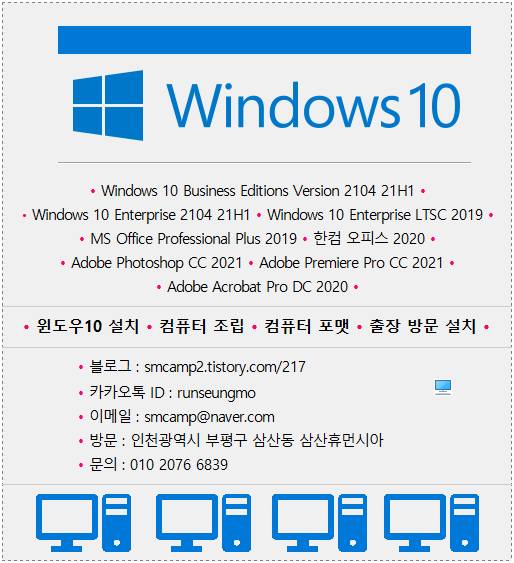 | 만능 윈도우10 Pro 21H2+MS오피스+한컴오피스+아크로뱃+포토샵+프리미어+일러스트 유료배포 (0) | 2022.03.18 |
