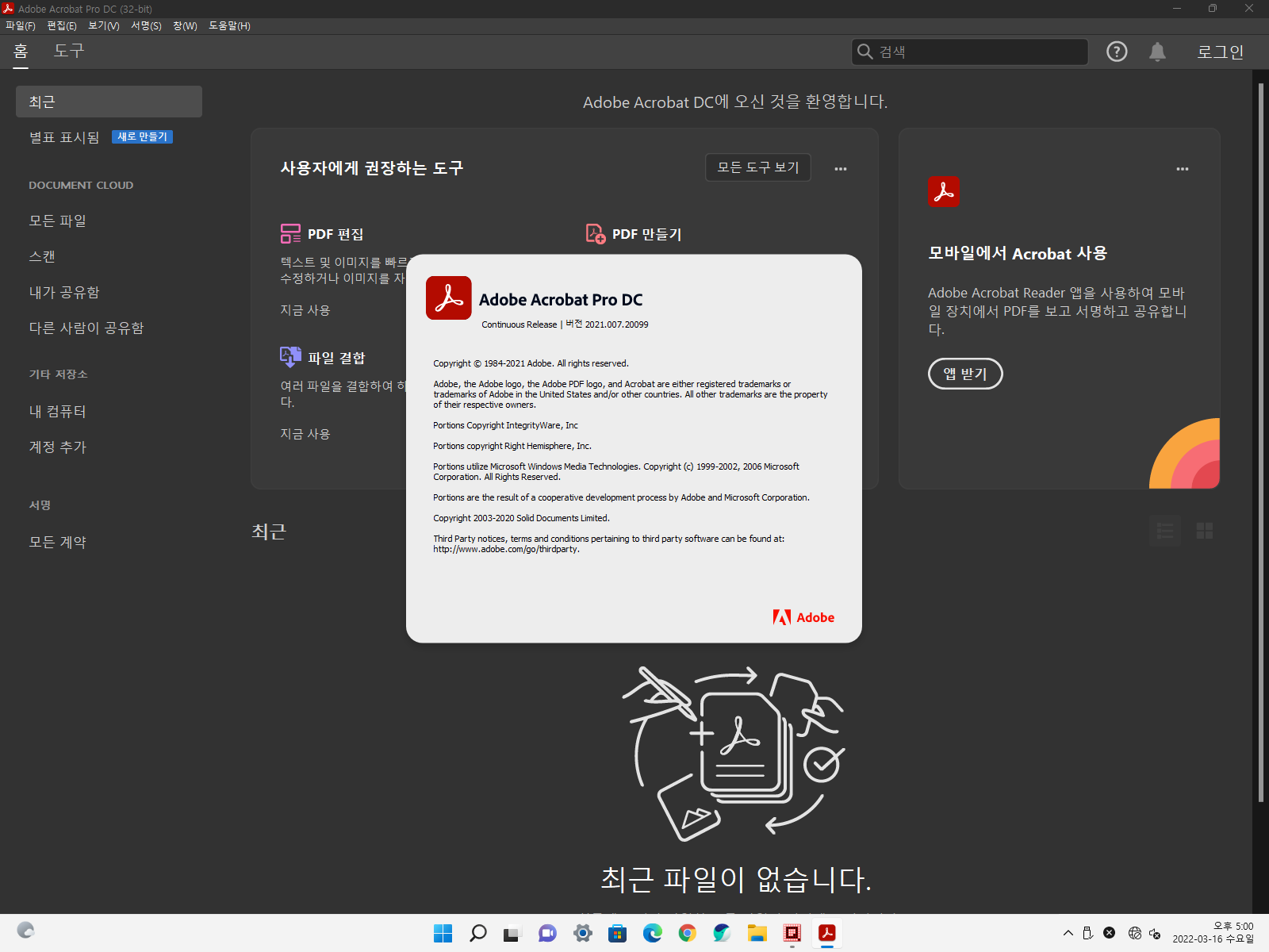 ♥ ↑Adobe Acrobat Pro DC 2021 어도비 아크로뱃 프로 2021 버전은 2021.007.20099 입니다.