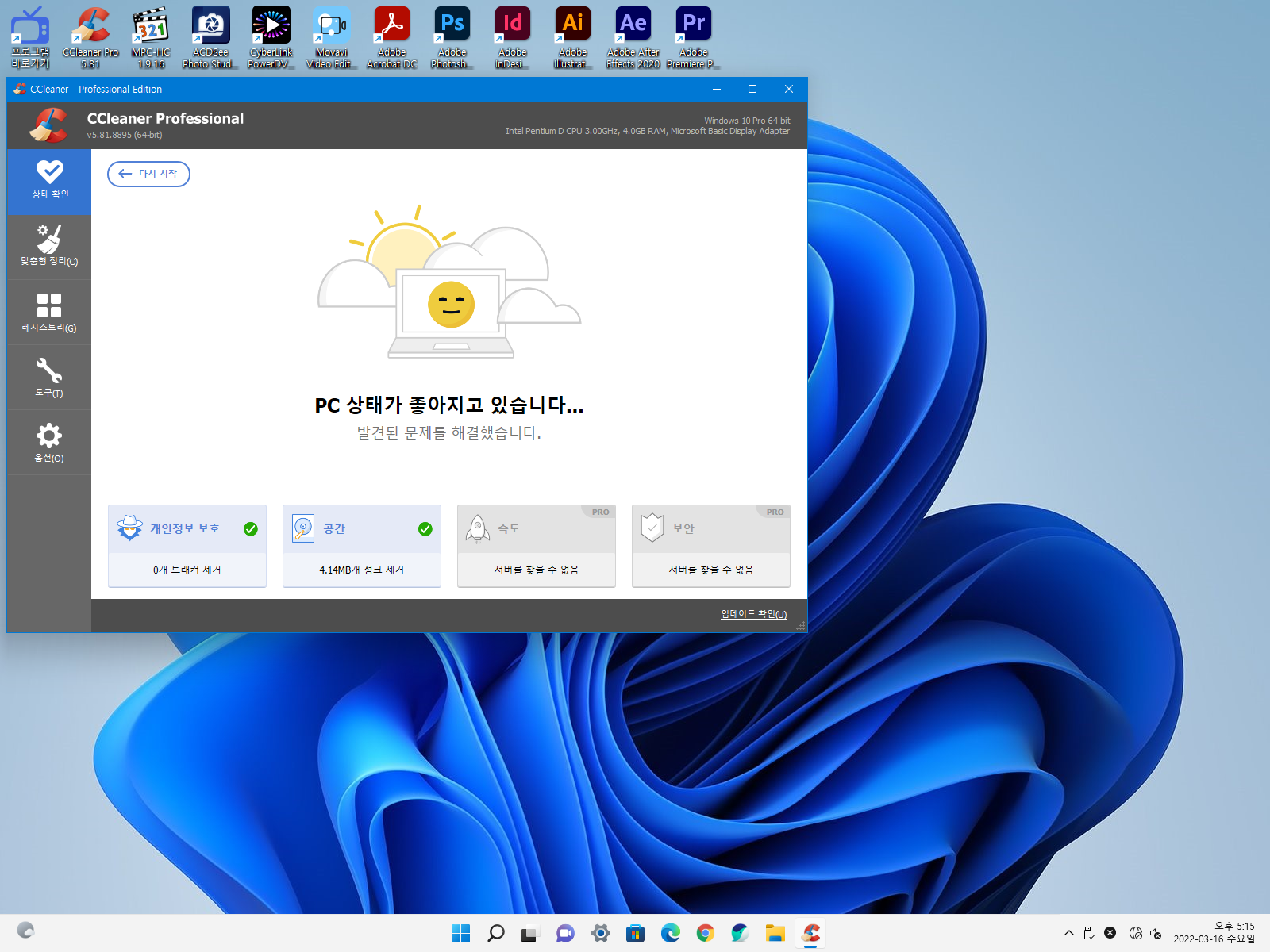 ♥ ↑만능 윈도우 11 제작이 마무리 되어 CCleaner 로 시작 프로그램, 레지스트리, 필요없는 파일들을 정리하고 죄적화 했습니다.