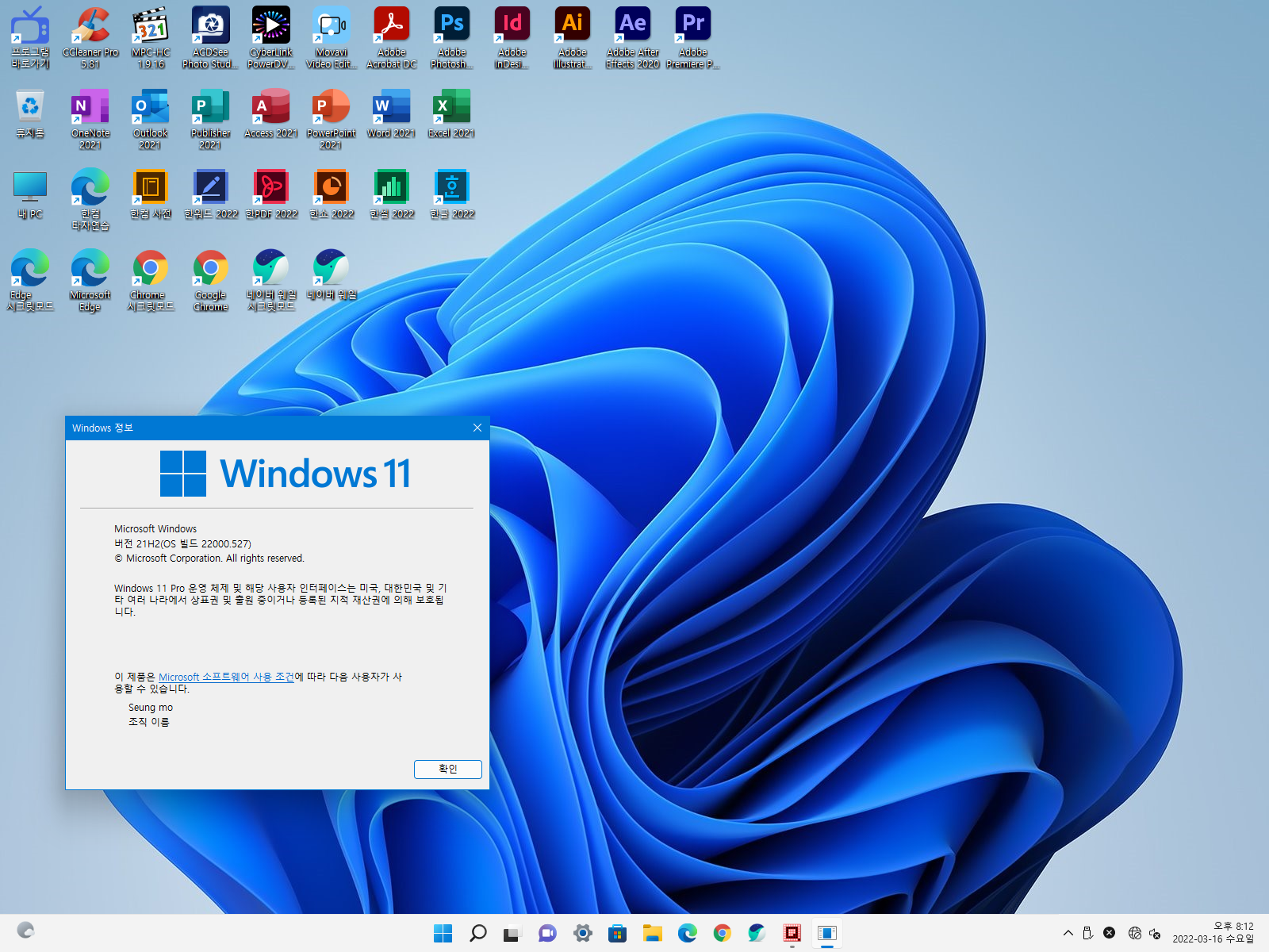 - Windows 11 Pro 21H2 (사용자계정)