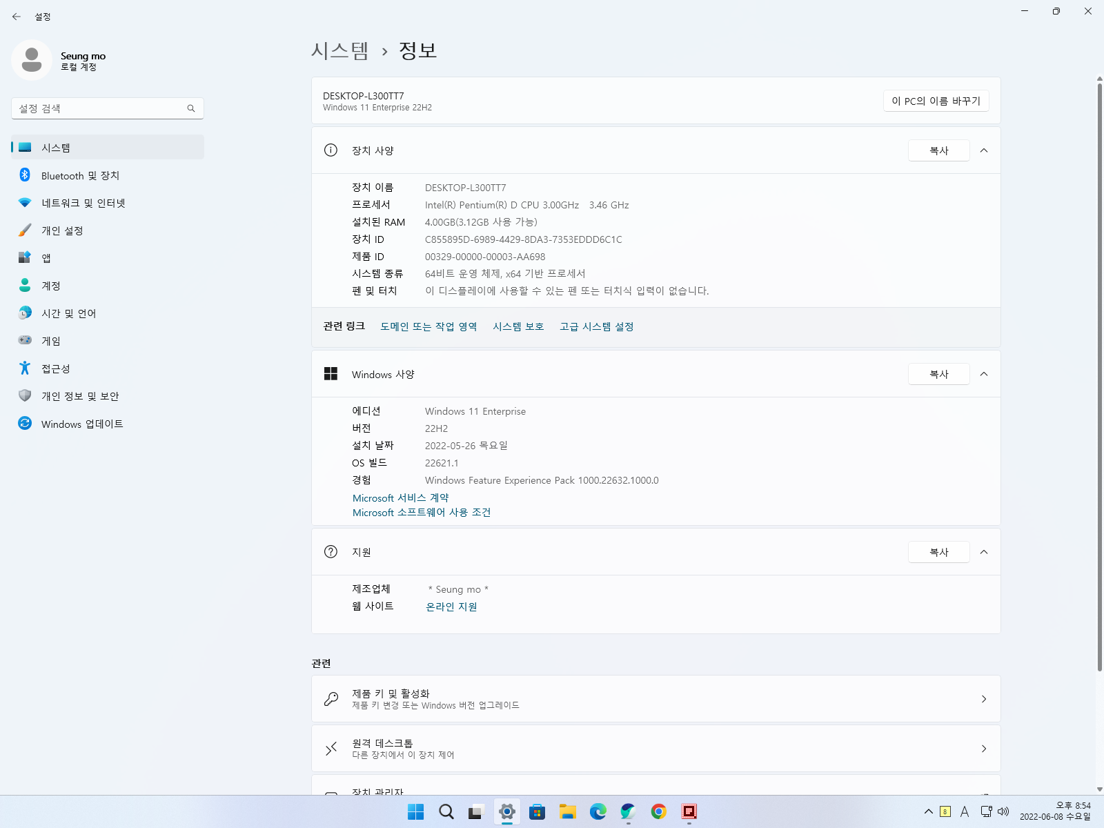 2022년 09월 12일 현재 버전은 22H2 (OS 빌드 22622.590) 입니다