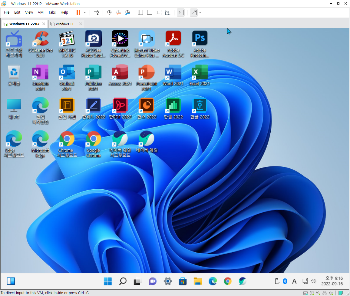 ♥ VMware Workstation에 만능 윈도우 11 기본 설치형 설치가 완료 되었습니다.