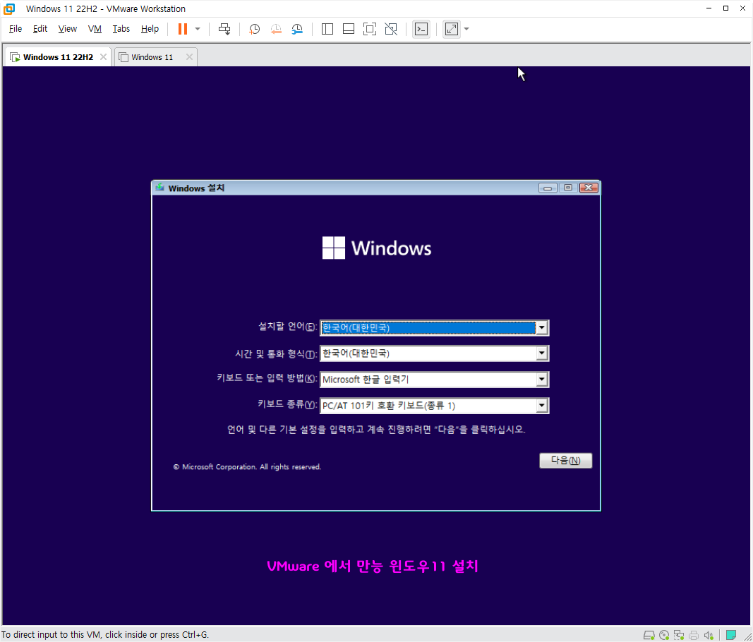 ♥ VMware Workstation 에서 원본 만능 윈도우11 기본 설치형을 설치해 보았습니다