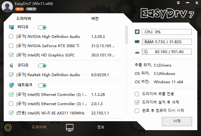 2. 이지 드라이버 (EasyDrv7) EasyDrv7 Win10 x64 7.22.0710.2 KO 한글 [다운로드] 6.34GB