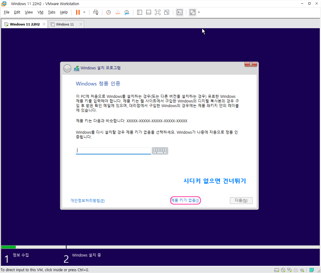 ♥ 제품 키가 없음 클릭해서 건너뛰기 하세요