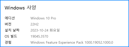| 1번 | Windows 10 Pro 22H2 19045.3570 |