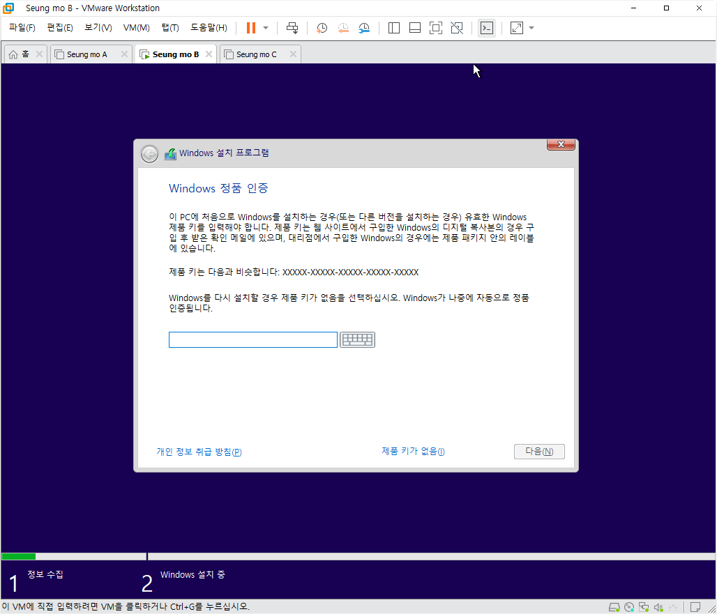 무봉인으로 제작이 되어서 윈도우 설치시 복사가 끝나고 첫번째 부팅이 되면 더 이상 설정 할