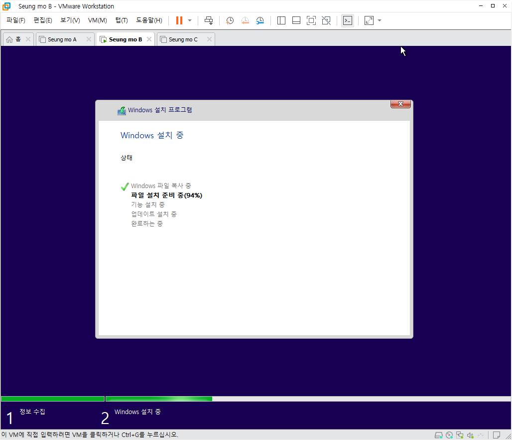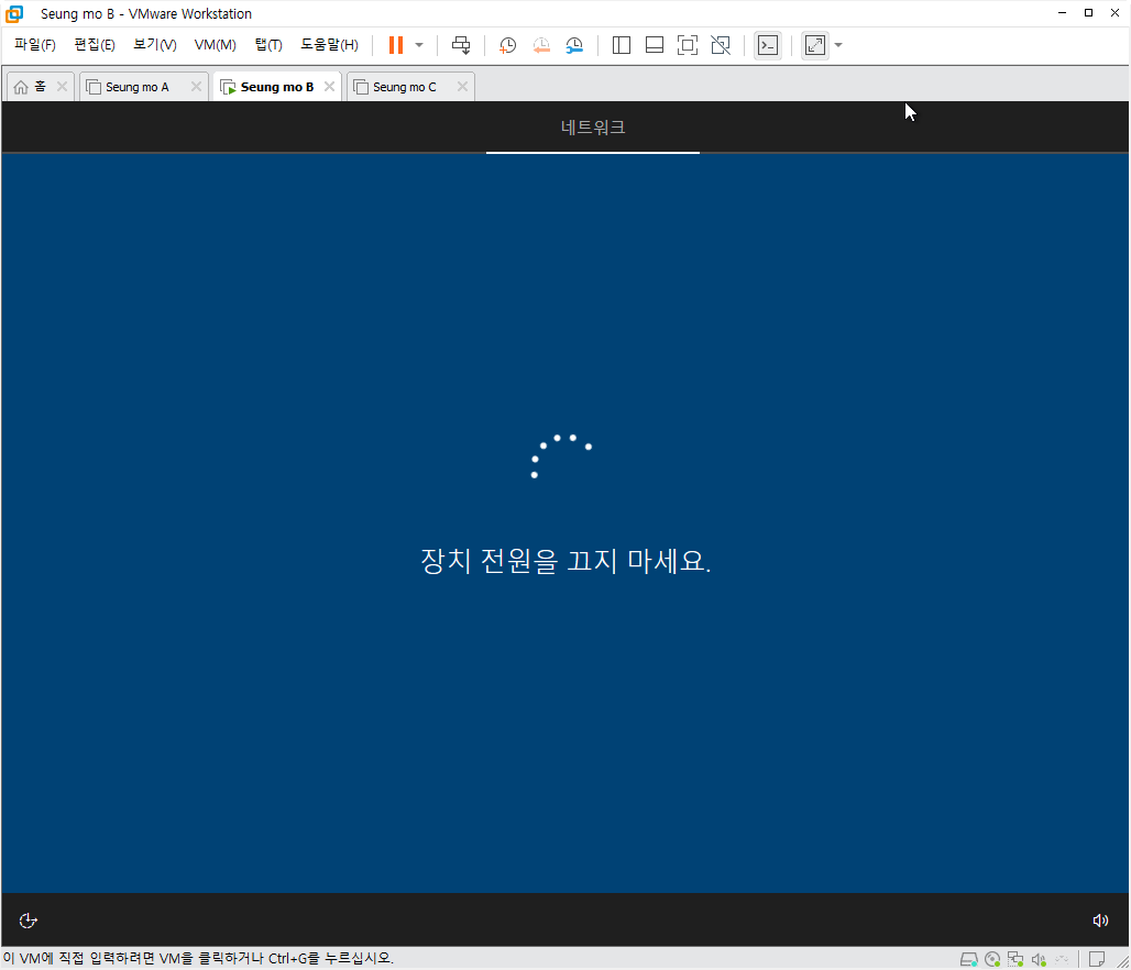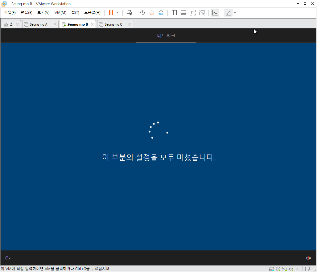설치중 복사후 첫부팅이 되면 설치가 완료 되고 5분~15분 이내에 설치가 모두 완료 됩니다.