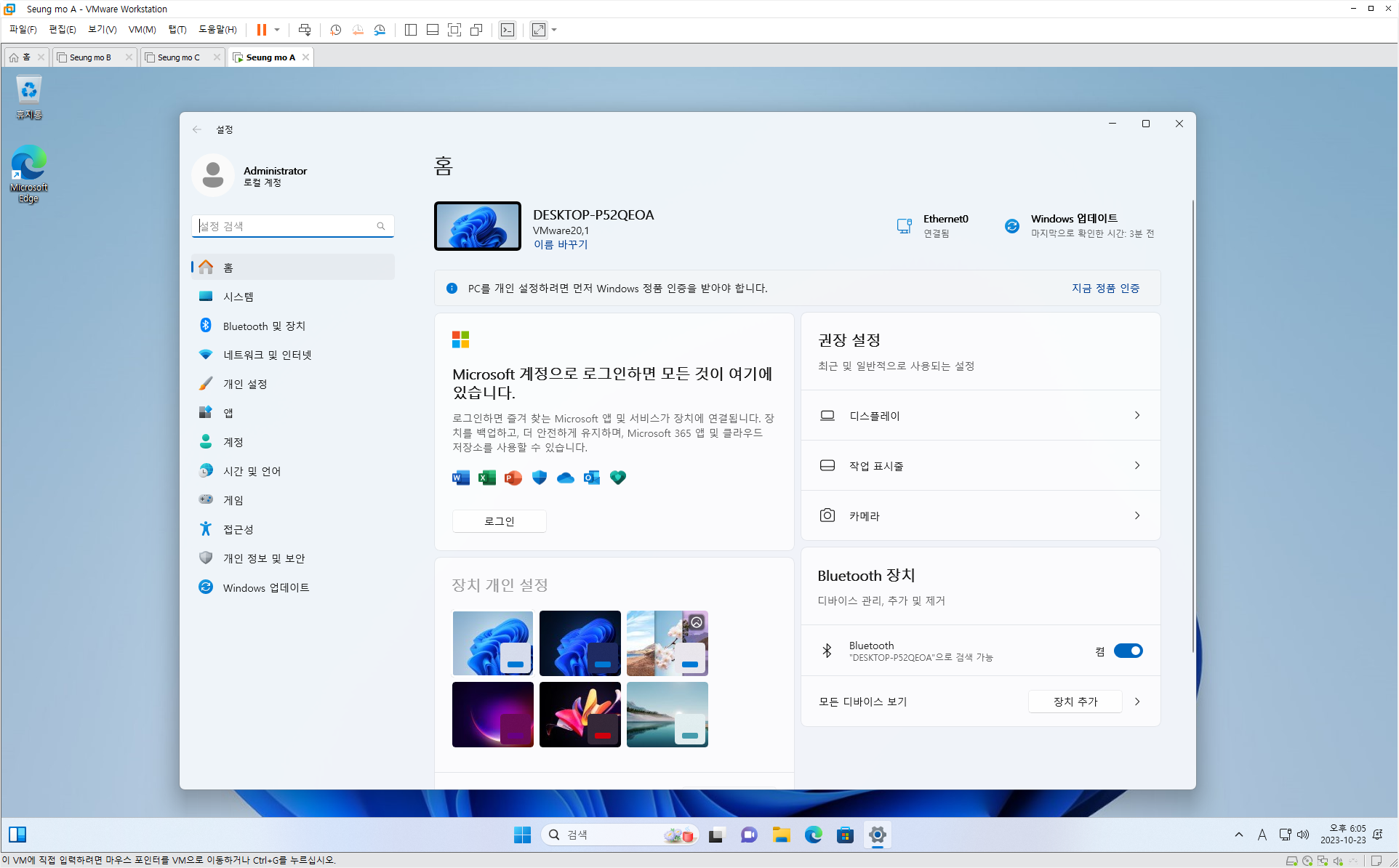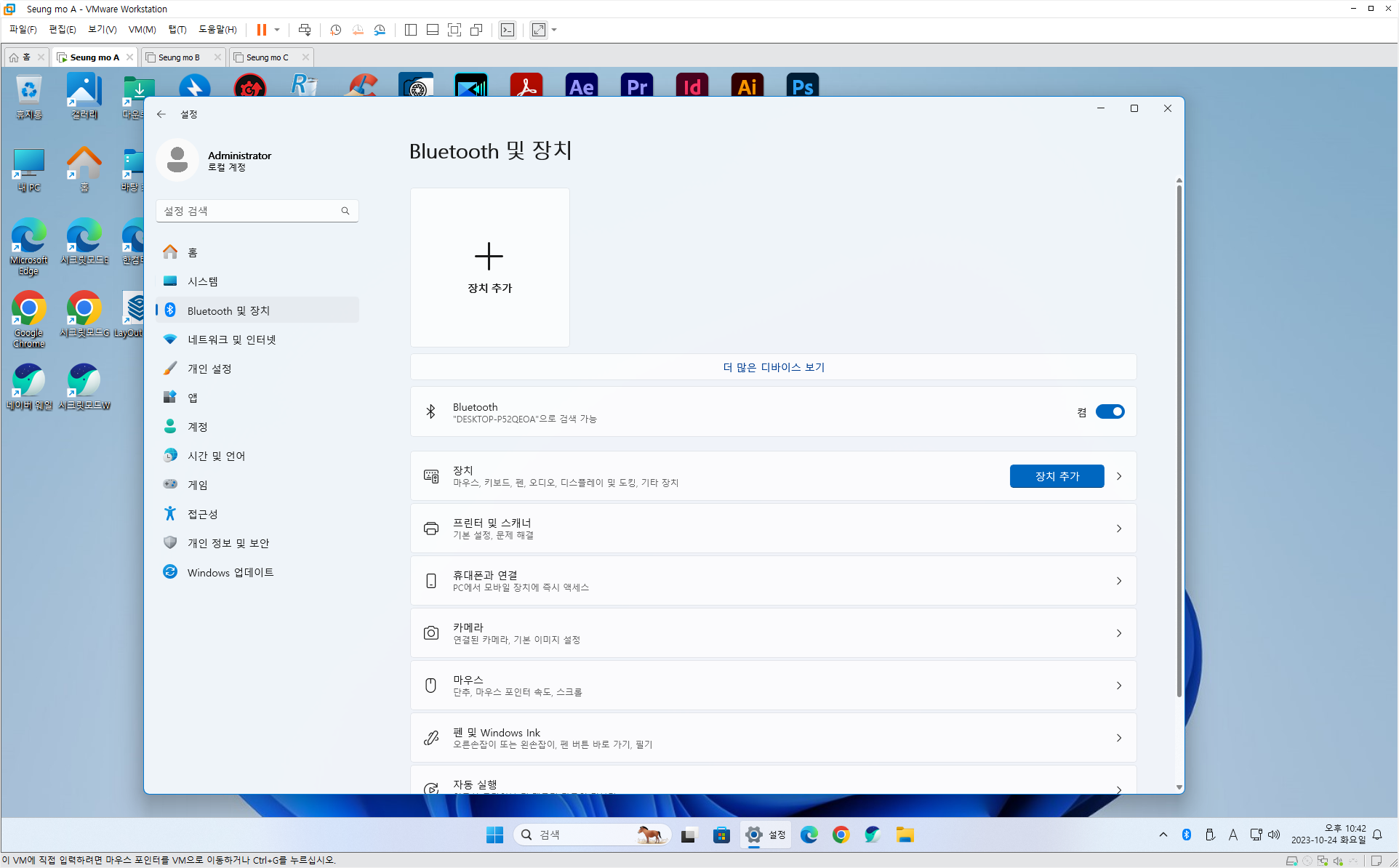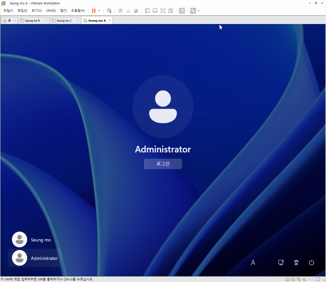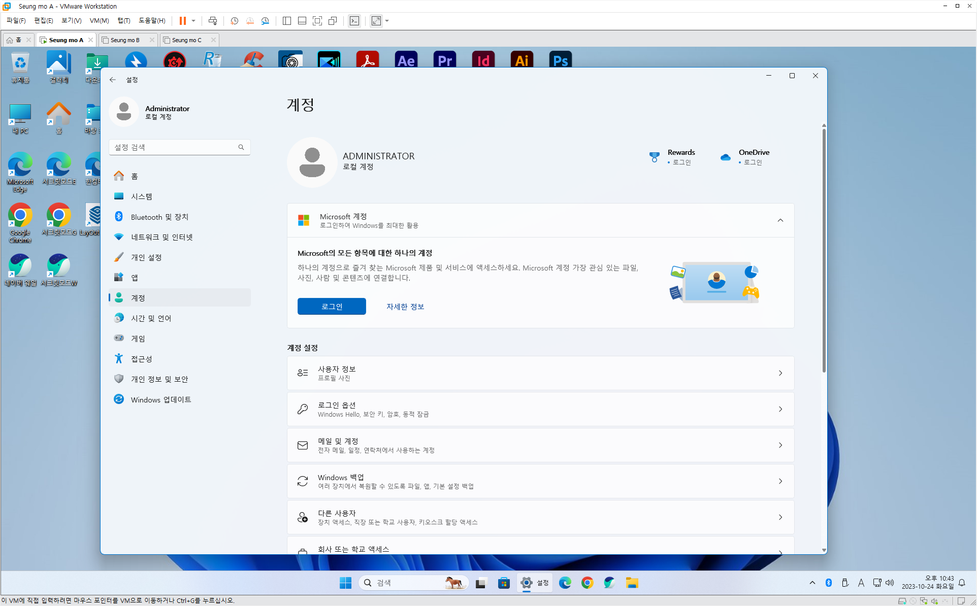 • 윈도우 11 관리자 계정 (Administrator) (관리자 계정은 노트북 지문 인식이 안됩니다)