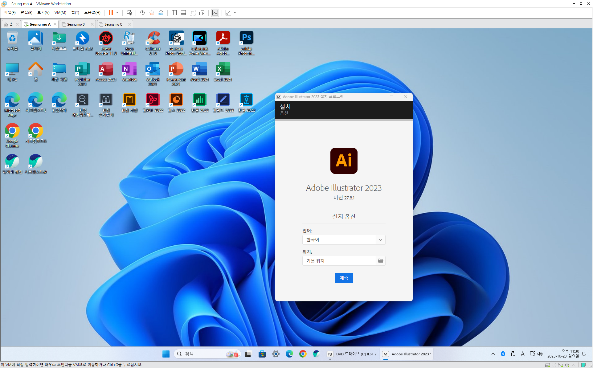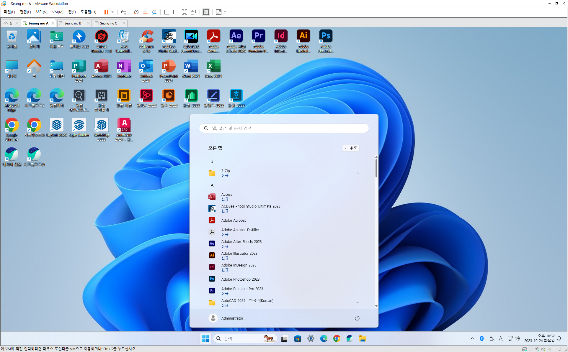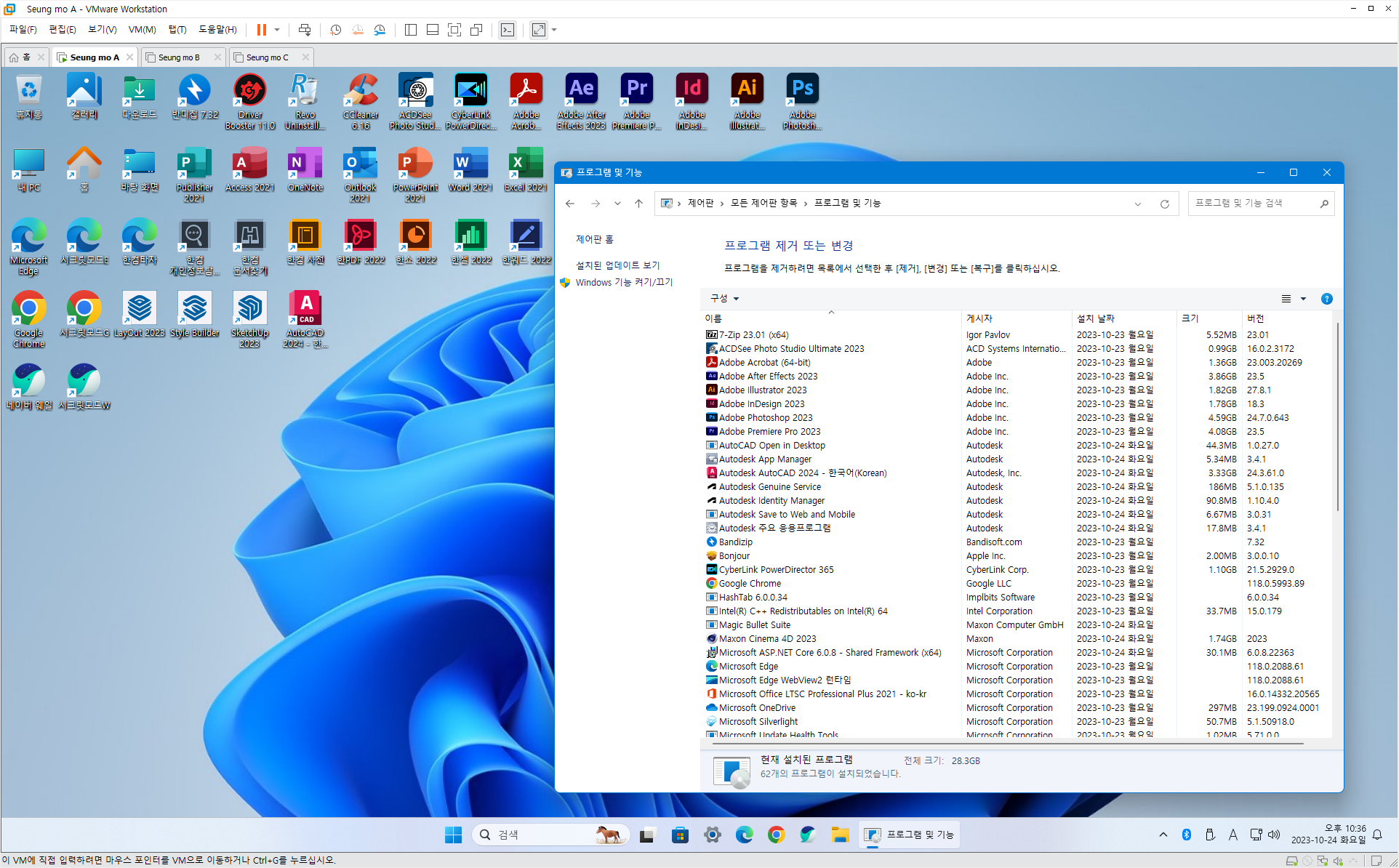◈73.유료 배포 만능 윈도우 11 - Windows 11 Pro 23H2+MSOffice 2021+한컴오피스 2024+SketchUp 2023+Photoshop2024+Illustrator 2024