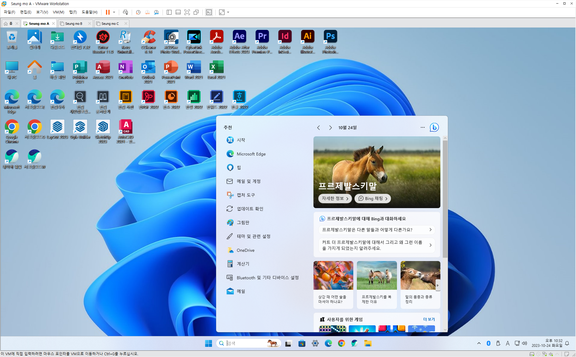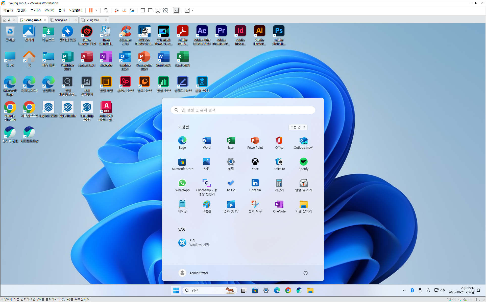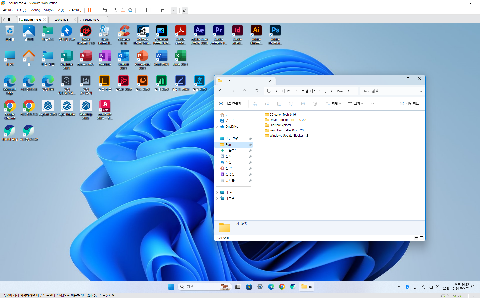 ◈73.유료 배포 만능 윈도우 11 - Windows 11 Pro 23H2+MSOffice 2021+한컴오피스 2024+SketchUp 2023+Photoshop2024+Illustrator 2024