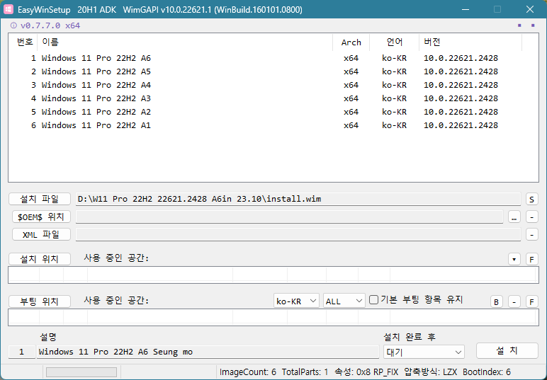 작업은 install.wim 이고 배포는 ISO 파일입니다