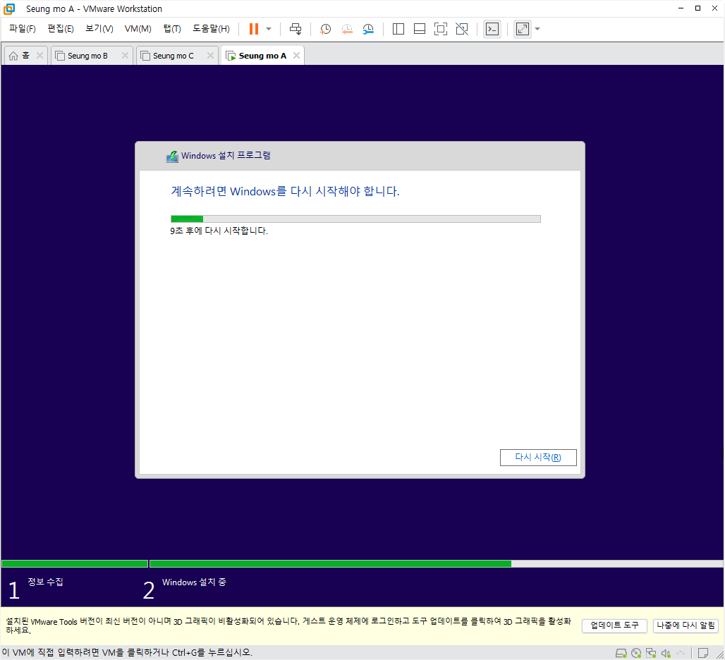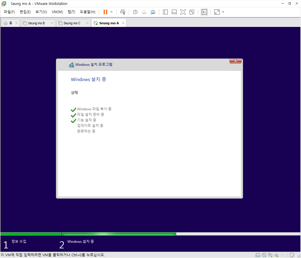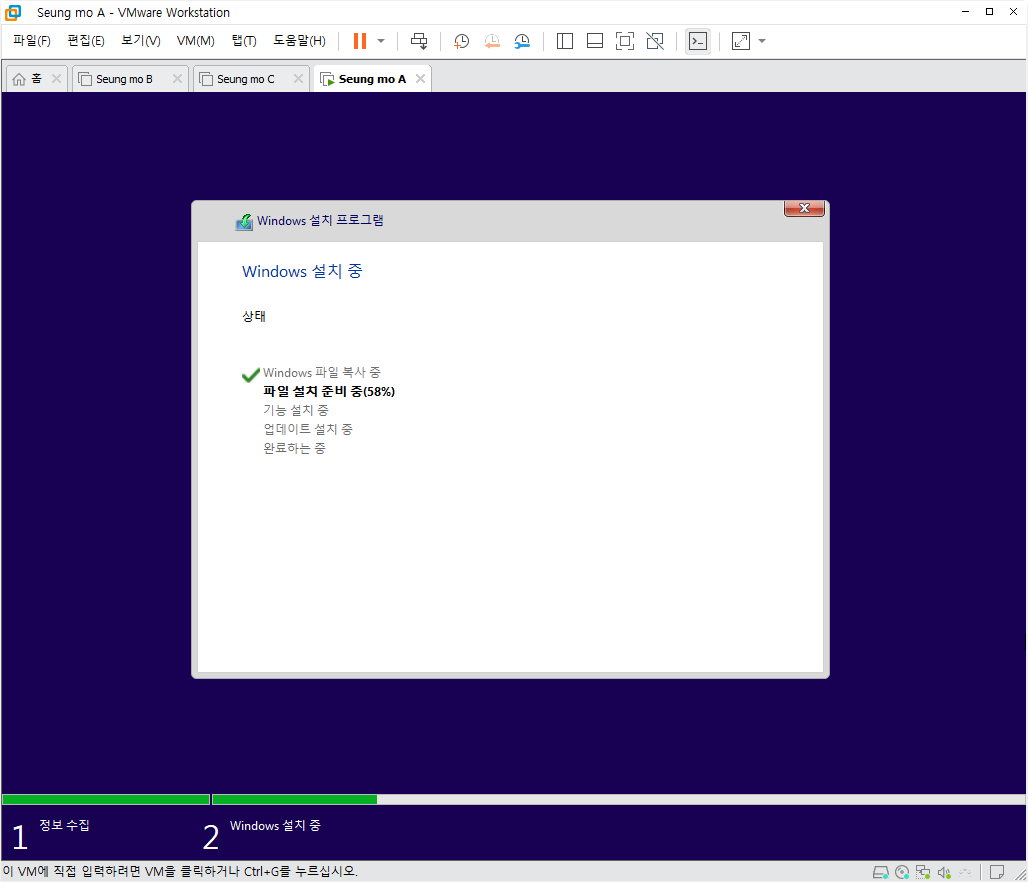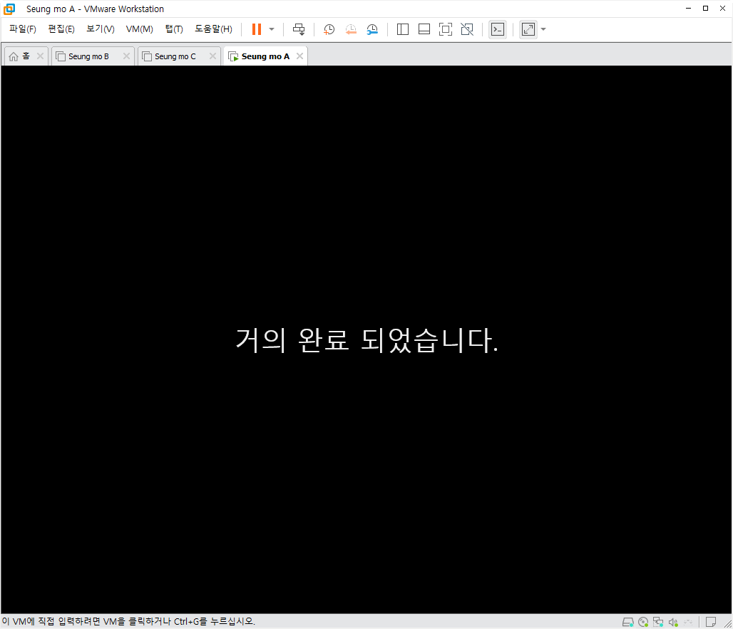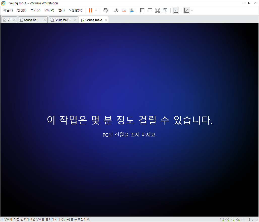 설치중 복사후 첫부팅이 되면 설치가 완료 되고 5분~15분 이내에 설치가 모두 완료 됩니다.