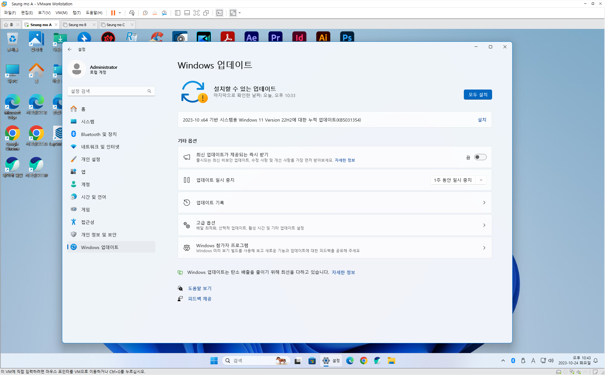 | 4번 | Windows 11 Pro 22H2 22631.1972 | 21.9GB (ISO 22.8GB) |