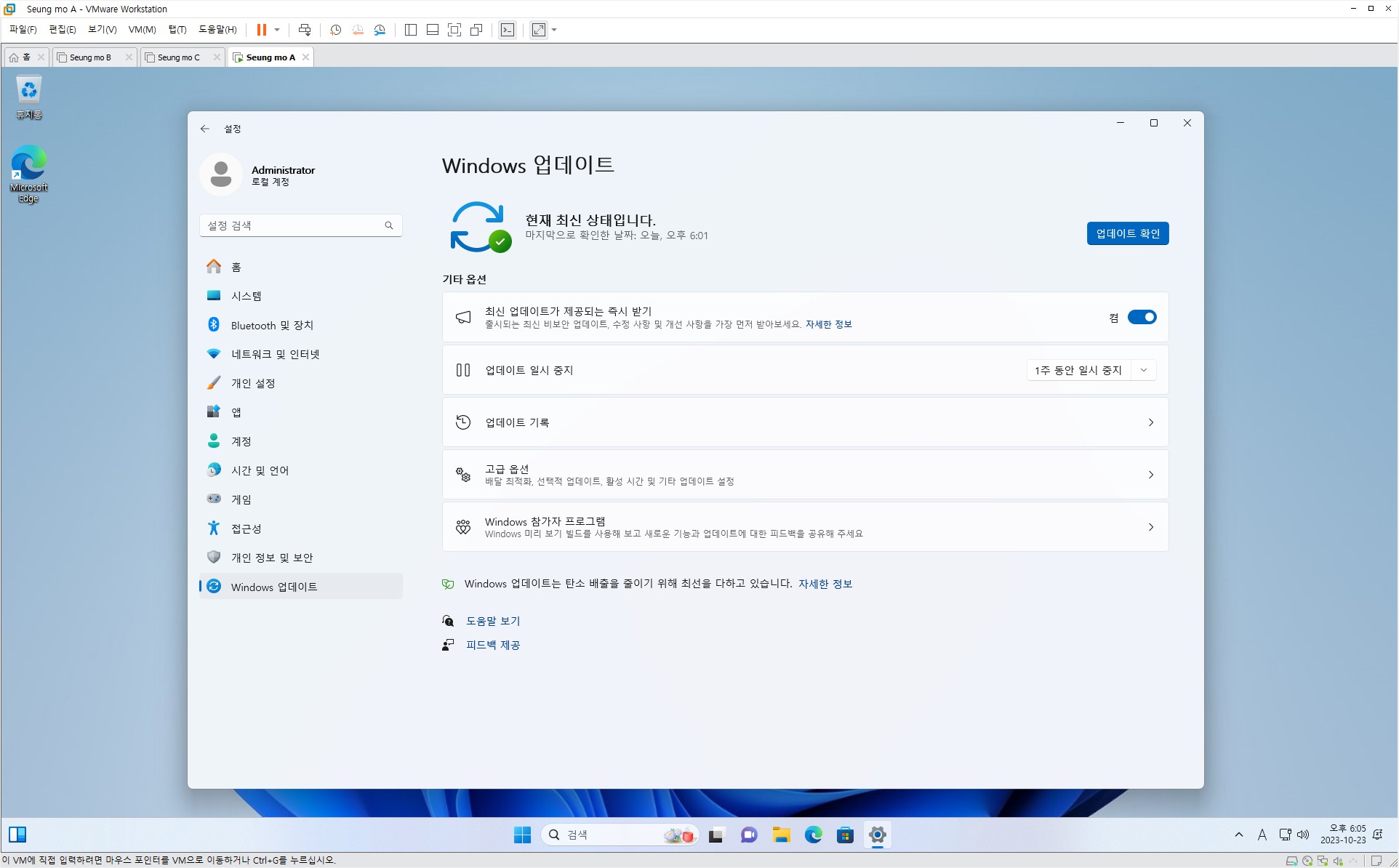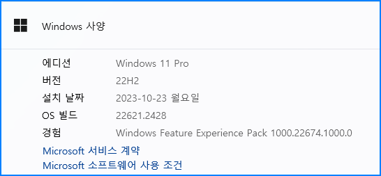 | 1번 | Windows 11 Pro 22H2 22631.1972 |