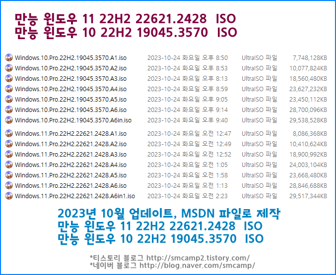 | * 1. 유료 배포 만능 윈도우 10 - Windows 10 Pro 22H2 19045.3570 https://blog.naver.com/smcamp/223242242215 https://smcamp2.tistory.com/315 |