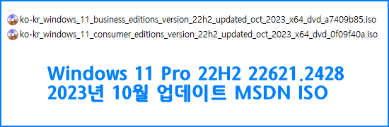 2.유료 배포 만능 윈도우 11 - Windows 11 Pro 22H2 22621.2428 출시 2023년 10월 18일 MSDN 버전 2...