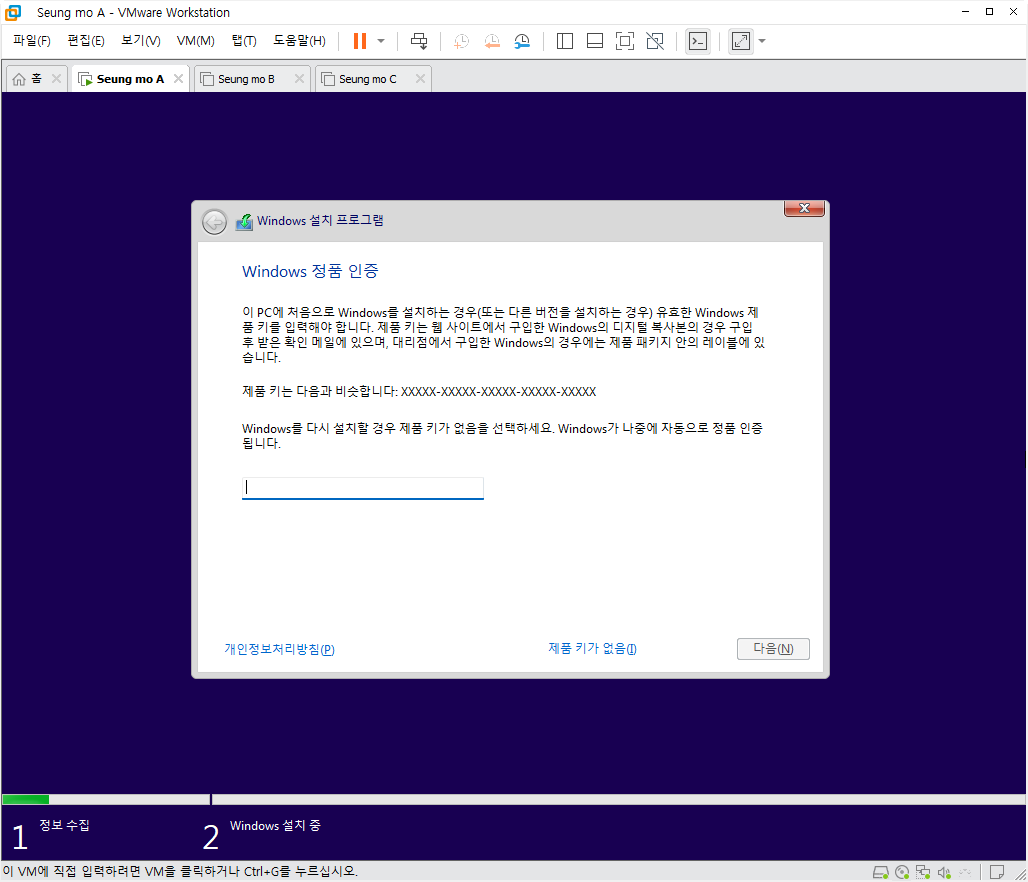 무봉인으로 제작이 되어서 윈도우 설치시 복사가 끝나고 첫번째 부팅이 되면 더 이상 설정 할