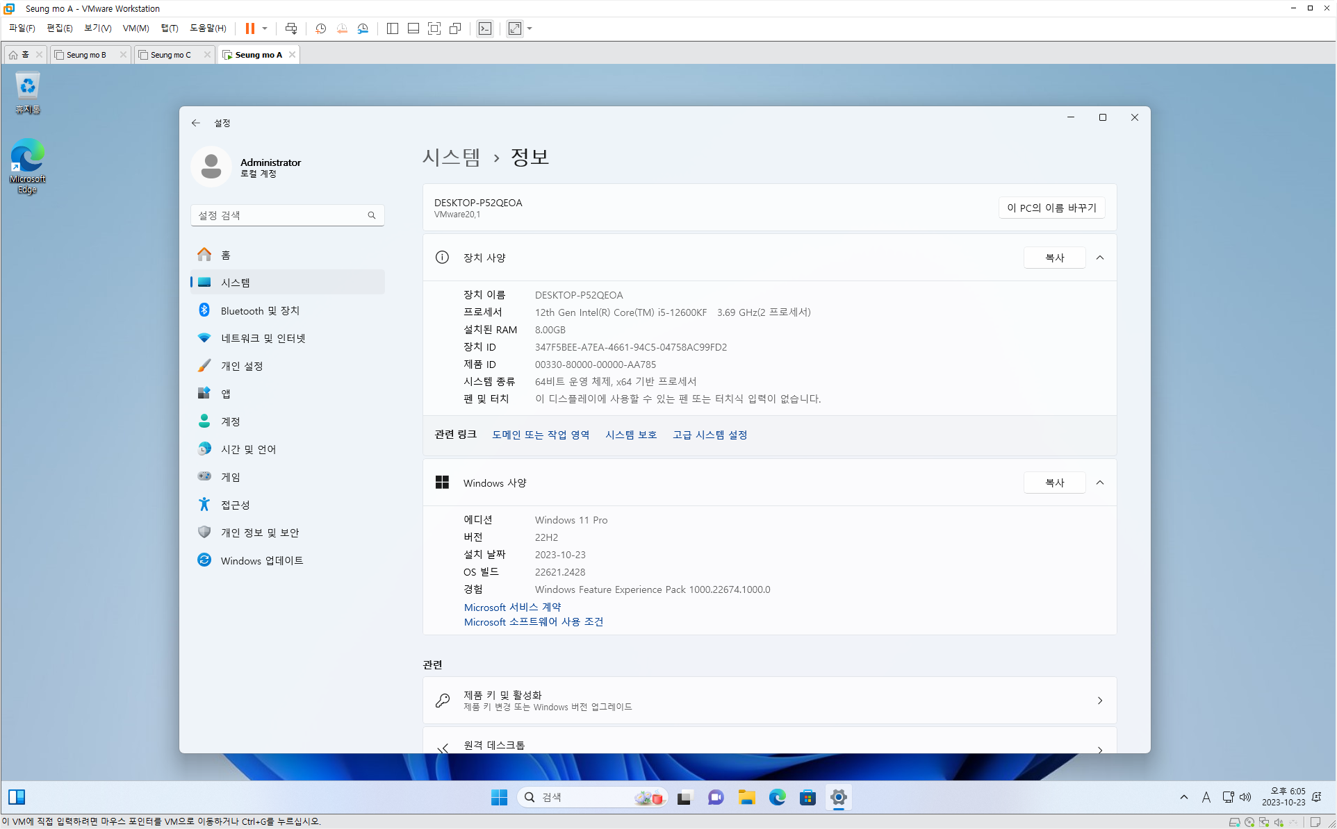 | 6in번 | Windows 11 Pro 22H2 22631.1972 | 27.2GB (ISO 28.1GB) |