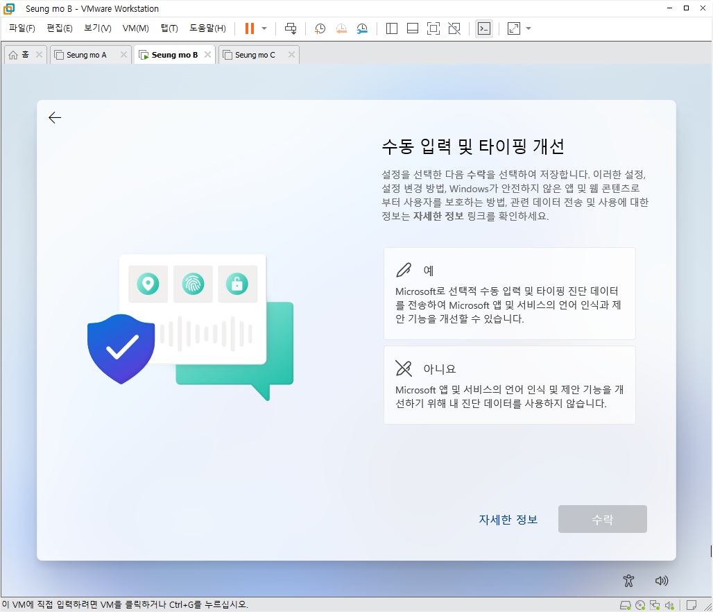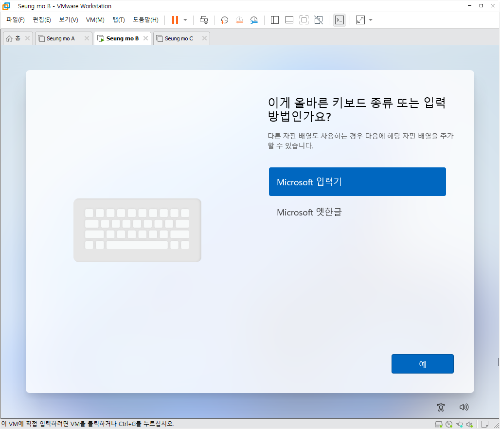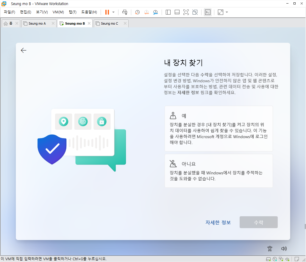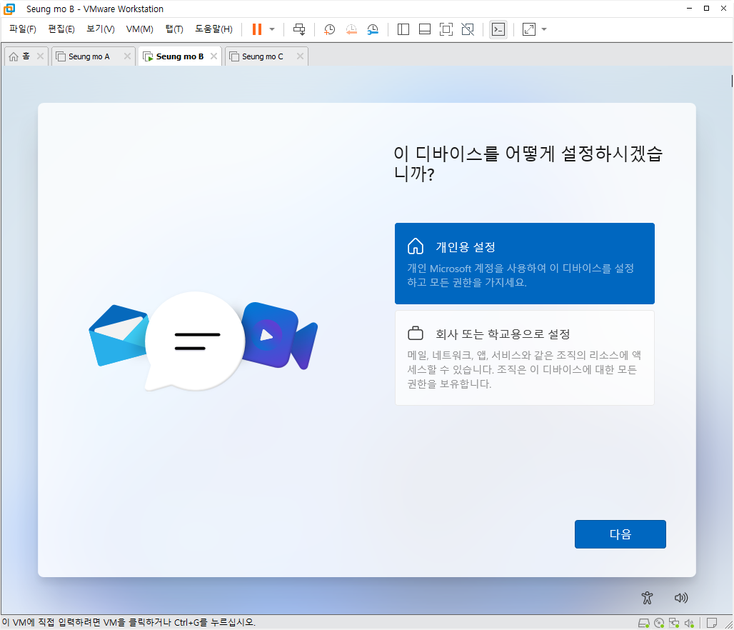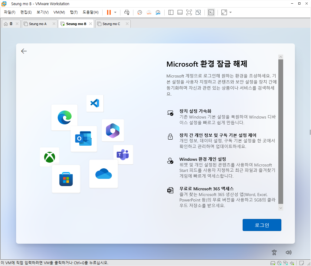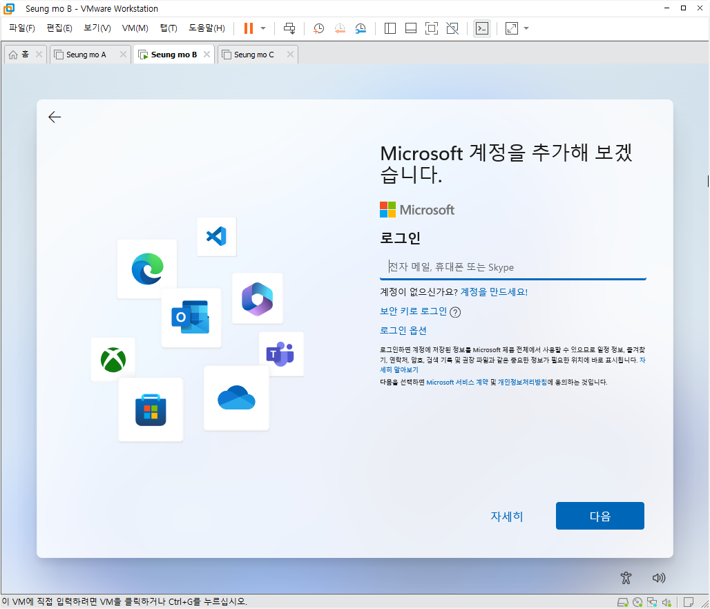 - MS 계정이 아닌 로컬 계정으로 설치 되었습니다