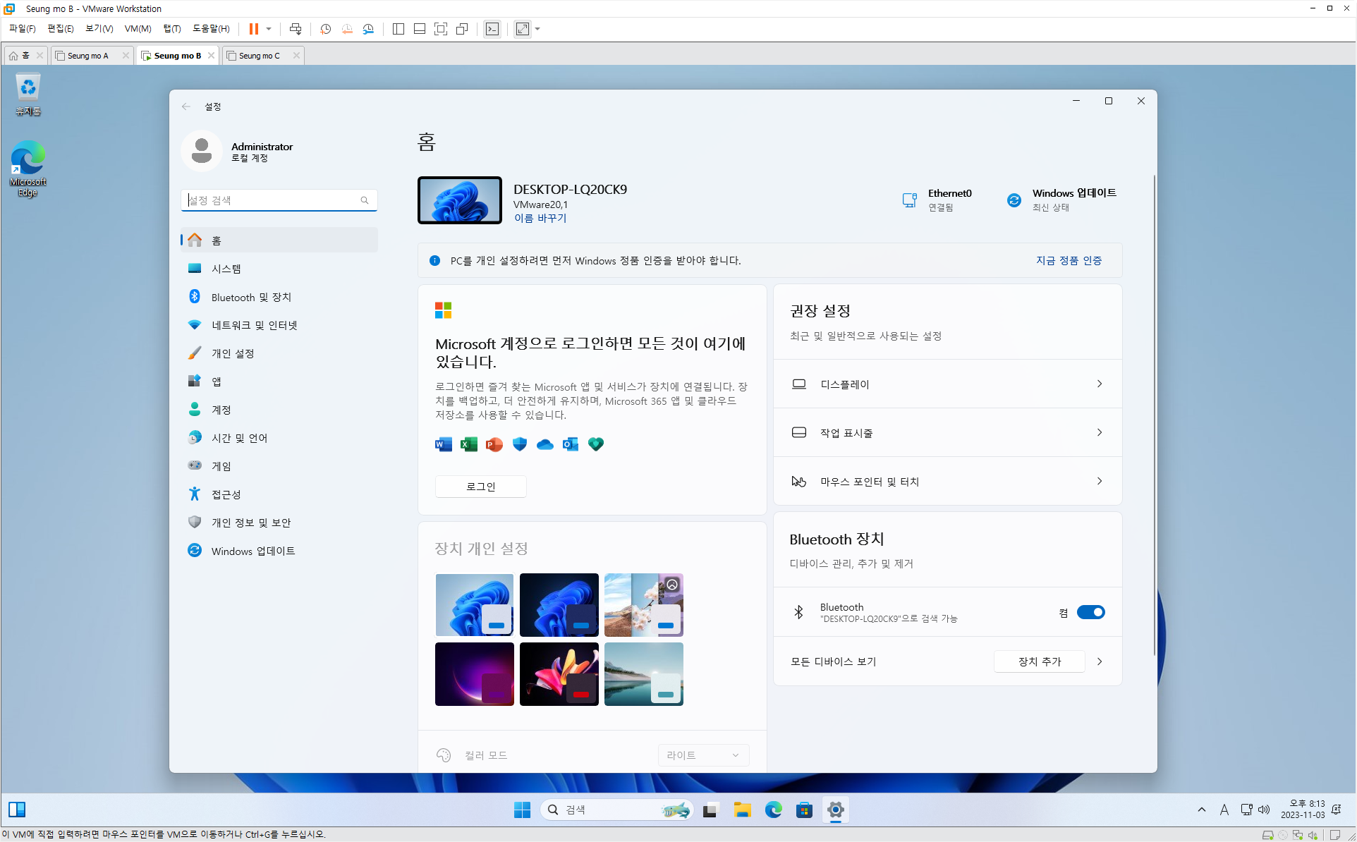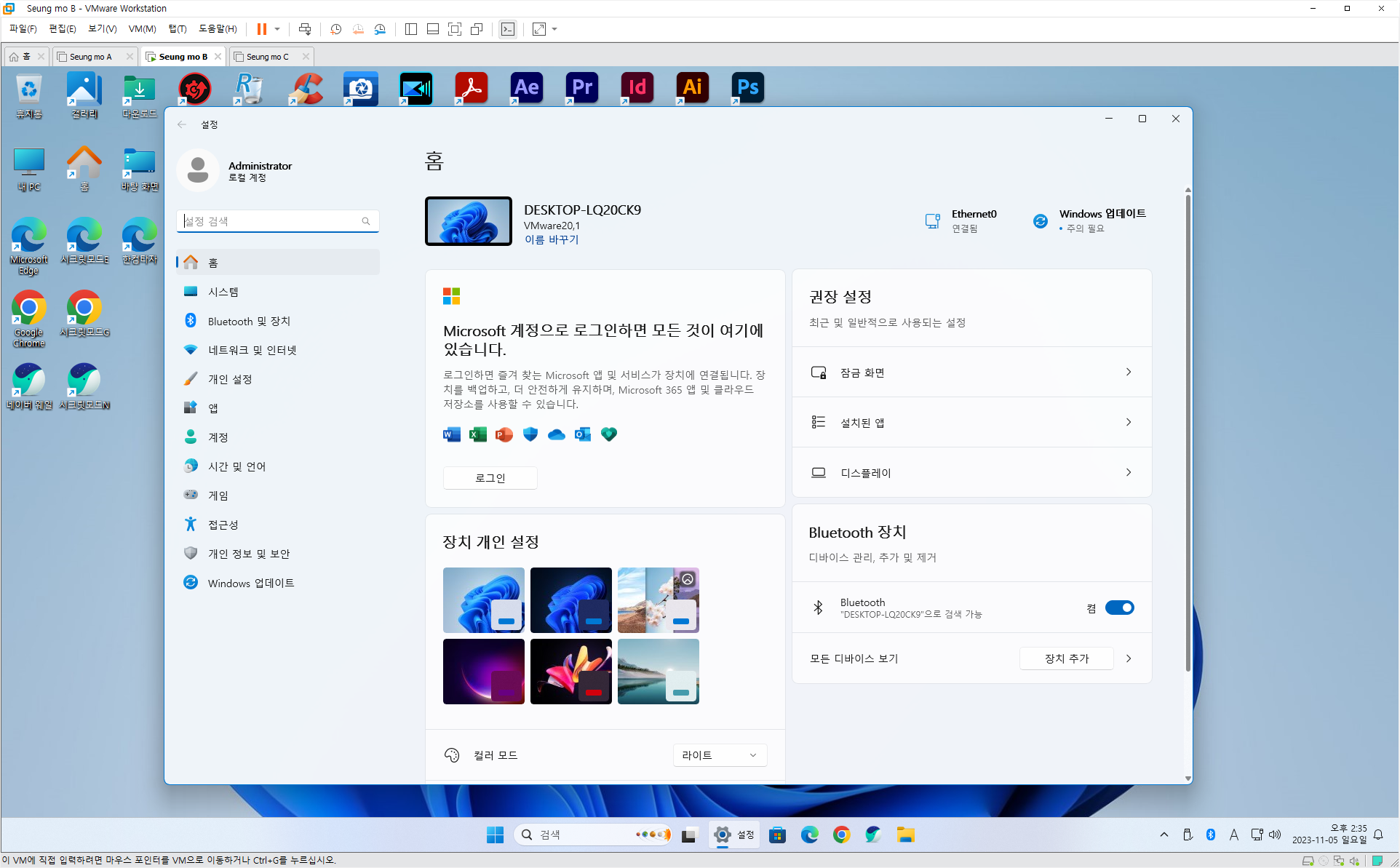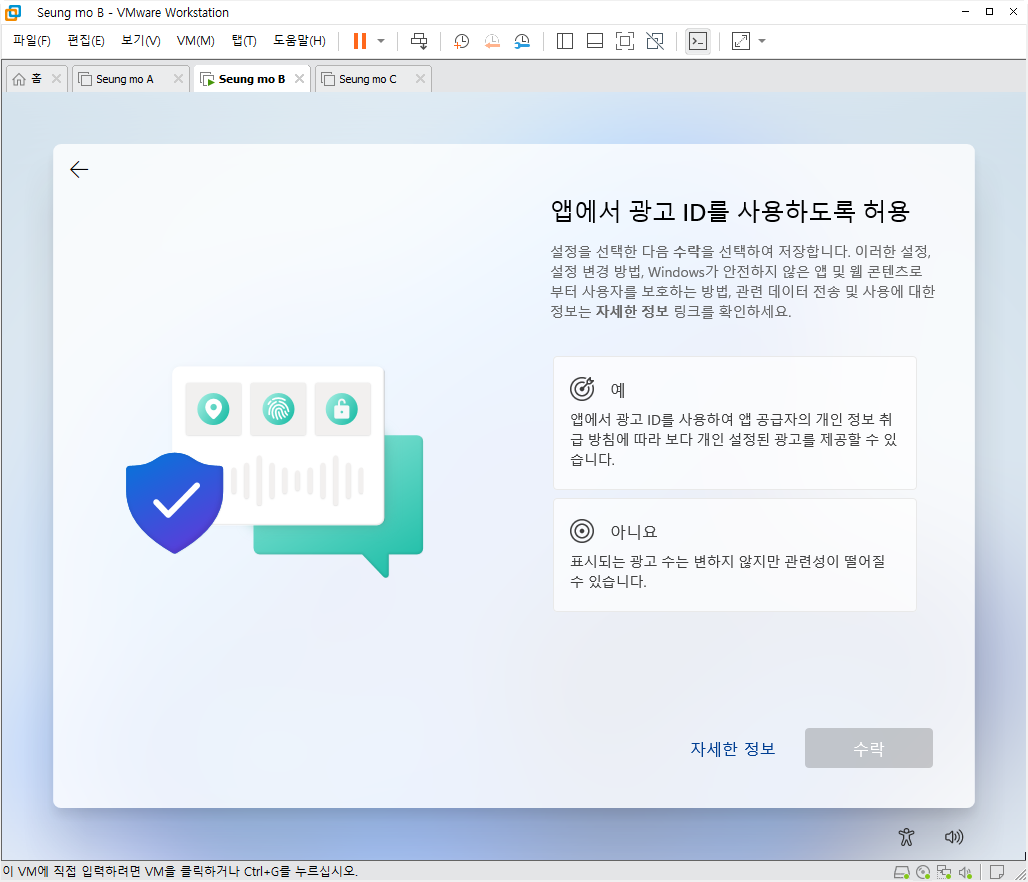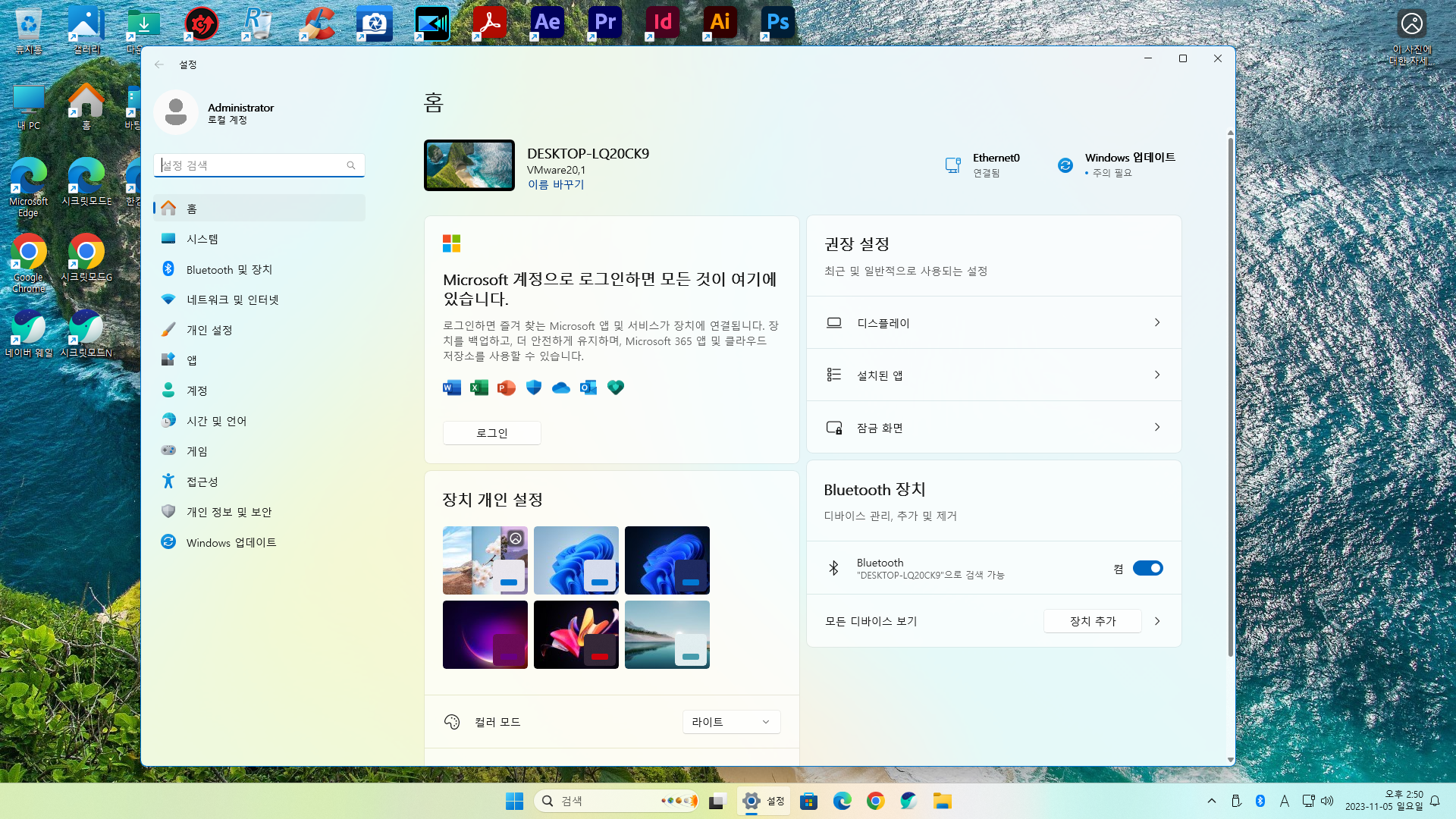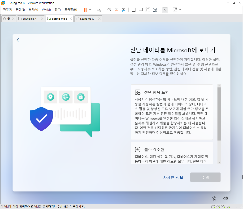 - MS 계정이 아닌 로컬 계정으로 설치 되었습니다