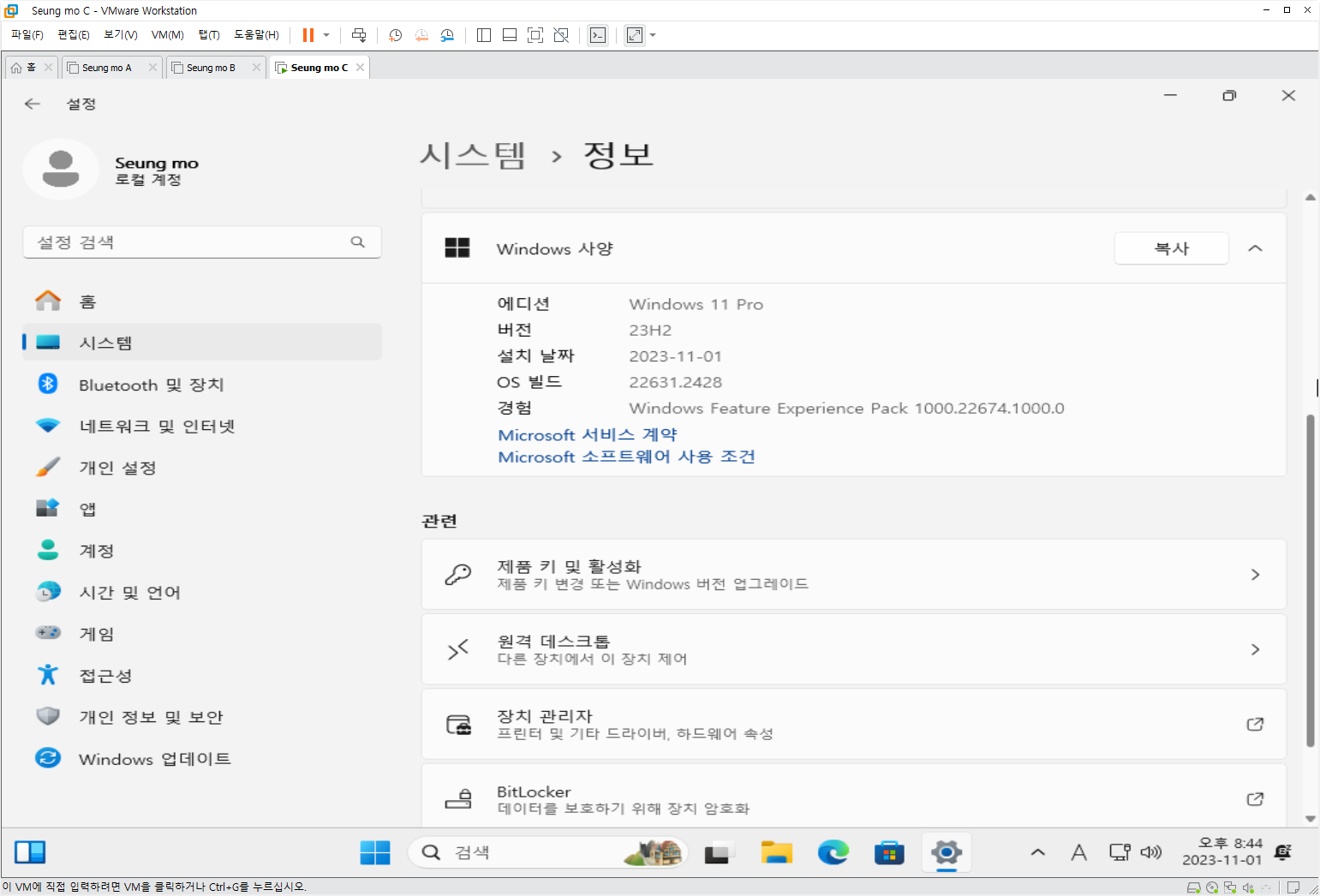 | 1번 | Windows 11 Pro 22H2 22631.1972 |