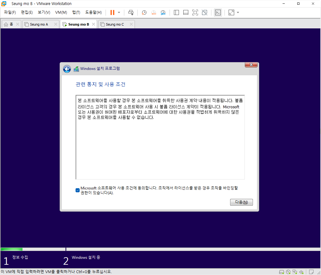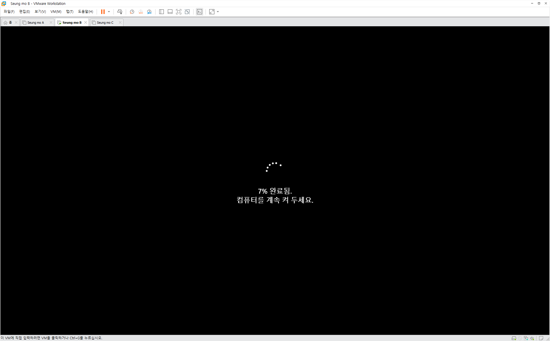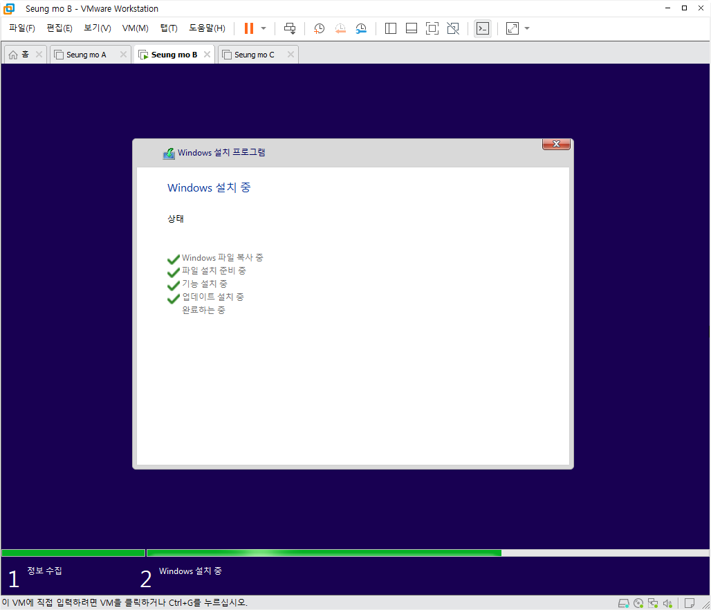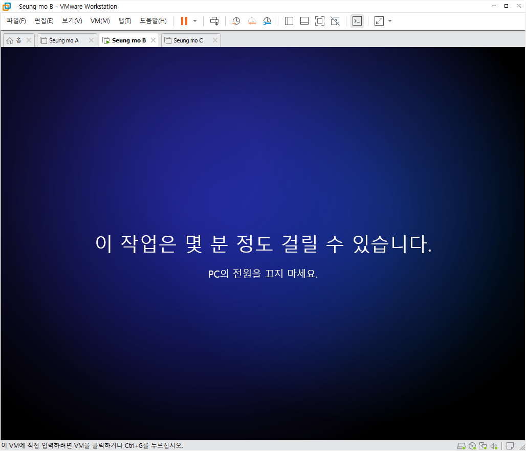 설치중 복사후 첫부팅이 되면 설치가 완료 되고 5분~15분 이내에 설치가 모두 완료 됩니다.
