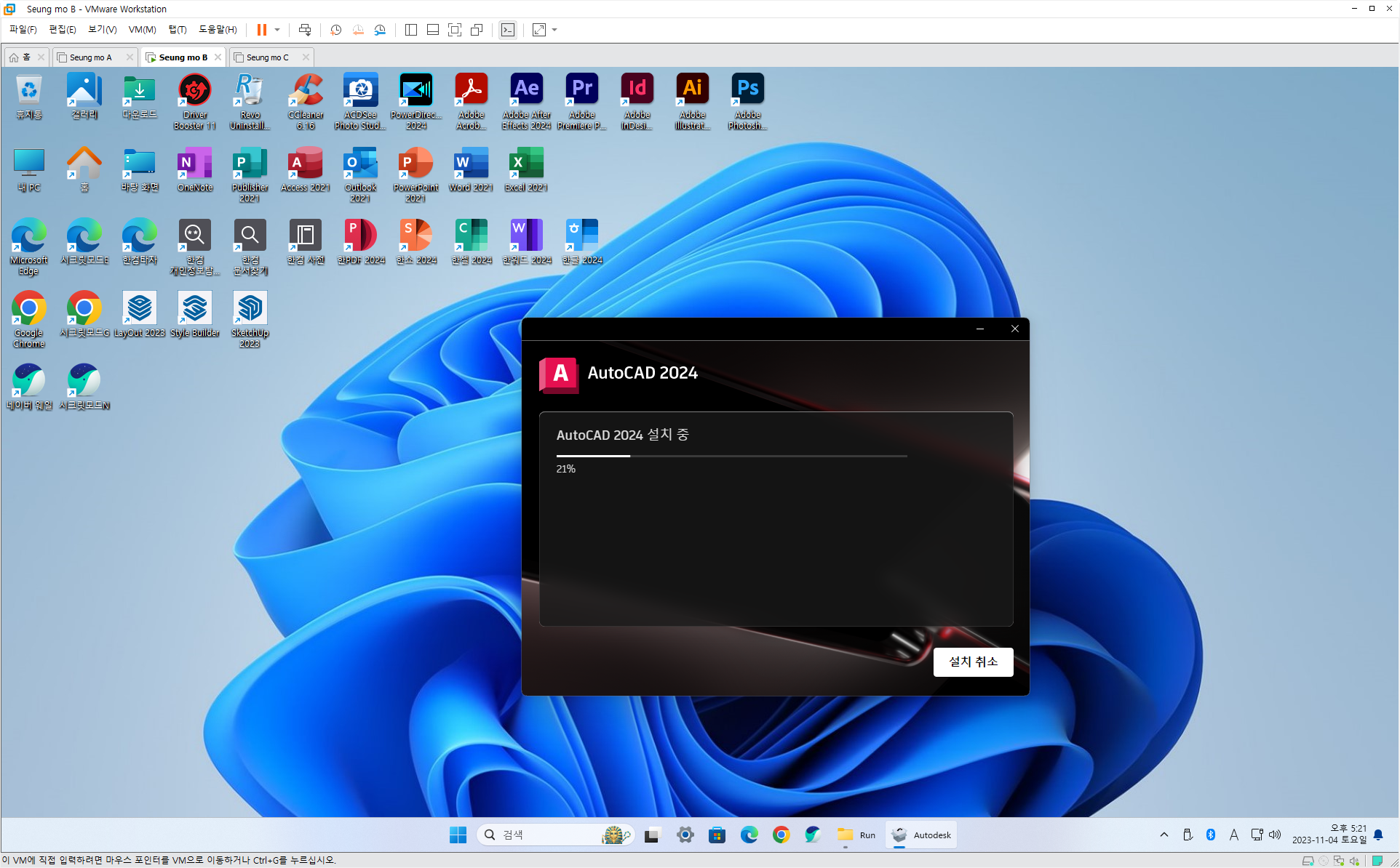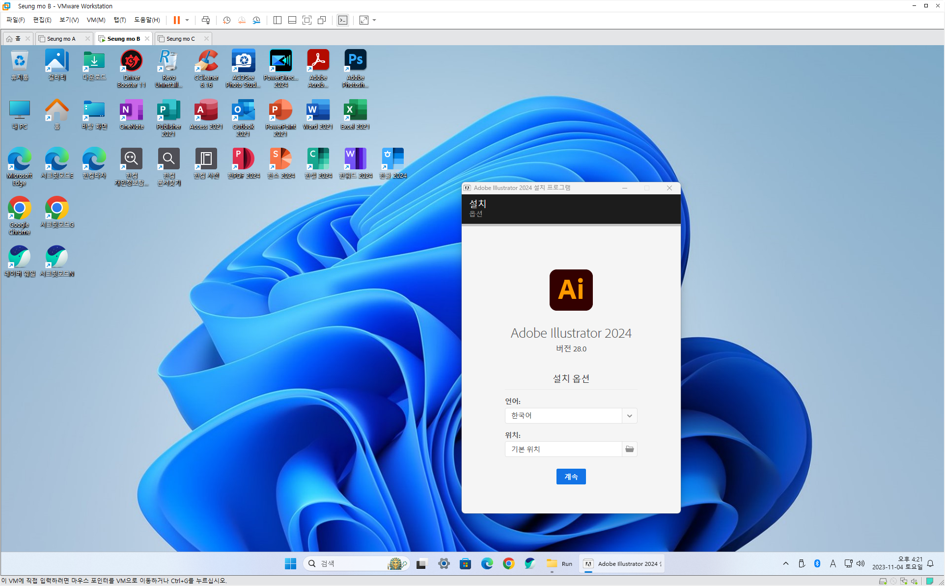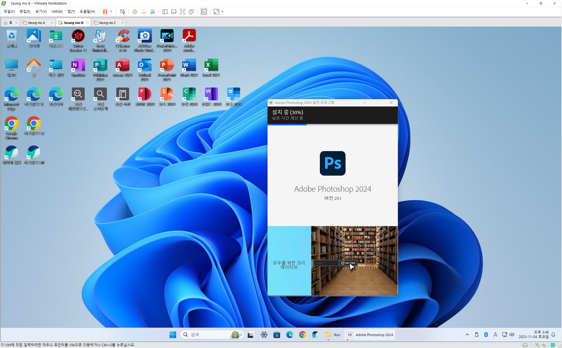 ◈73.유료 배포 만능 윈도우 11 - Windows 11 Pro 23H2+MSOffice 2021+한컴오피스 2024+SketchUp 2023+Photoshop2024+Illustrator 2024