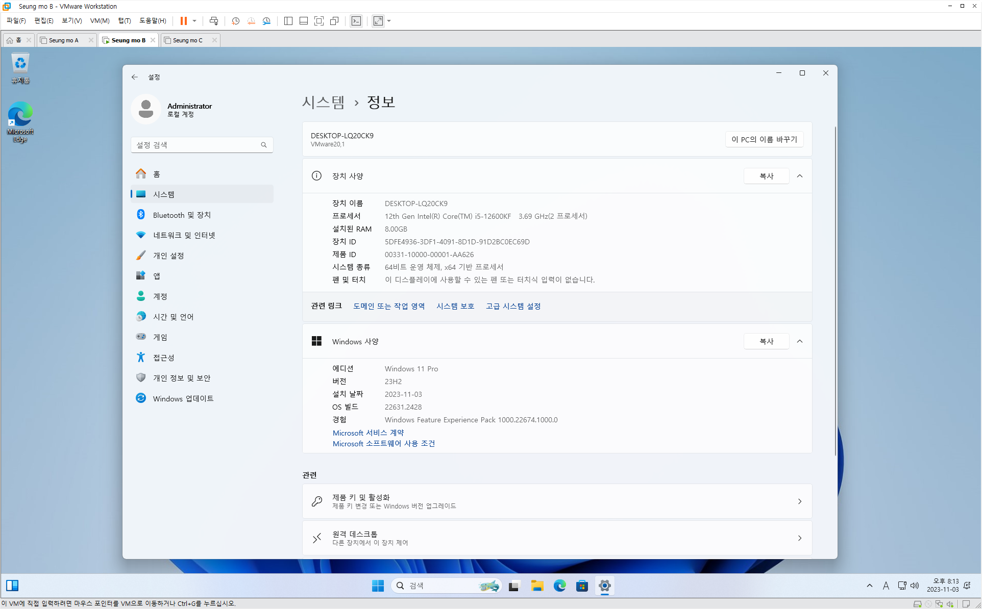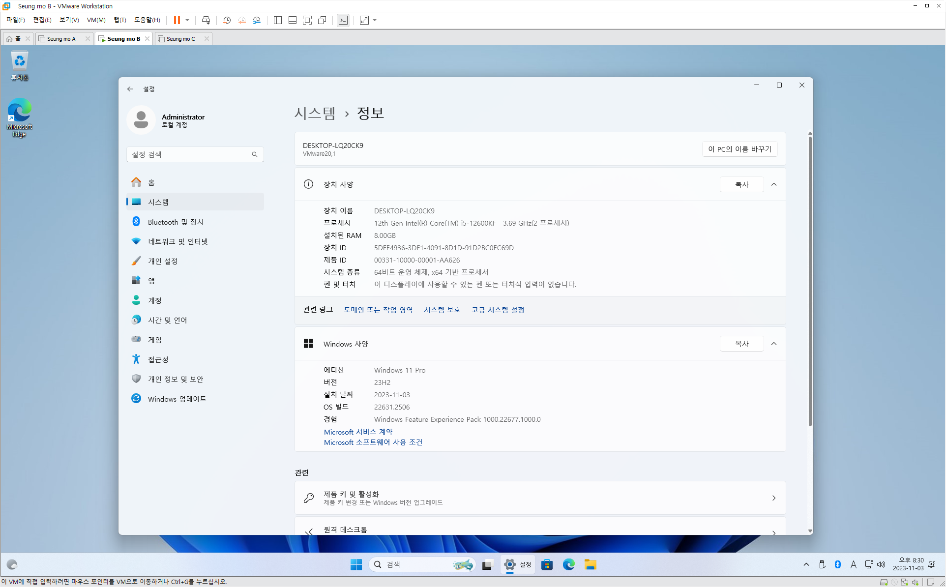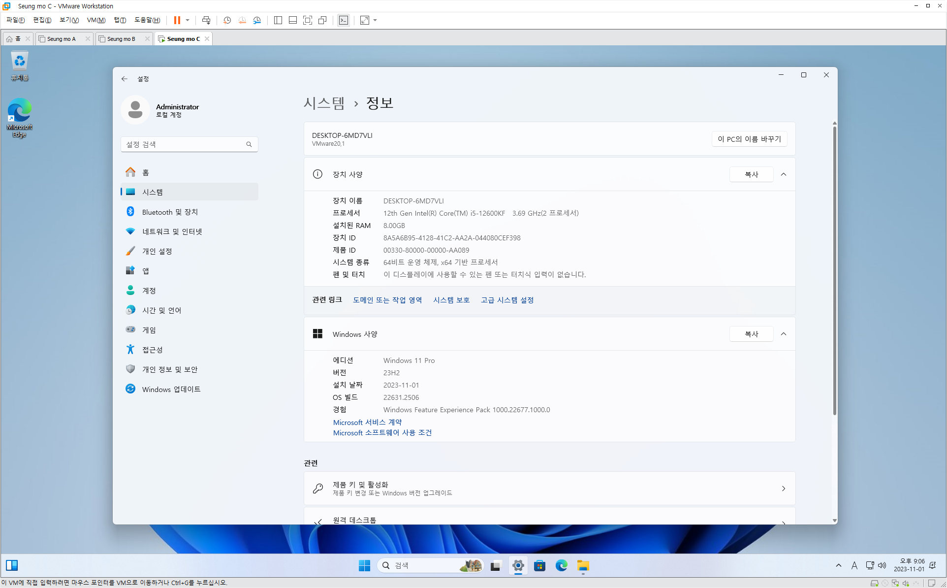 | 6in번 | Windows 11 Pro 22H2 22631.1972 | 27.2GB (ISO 28.1GB) |