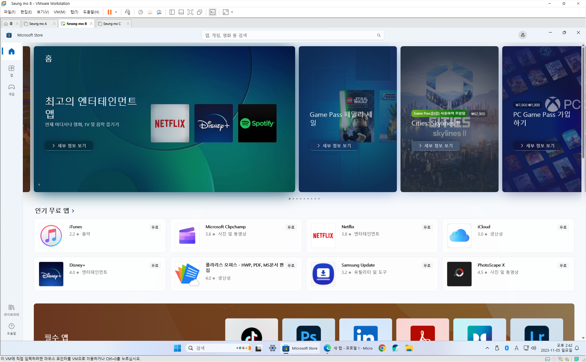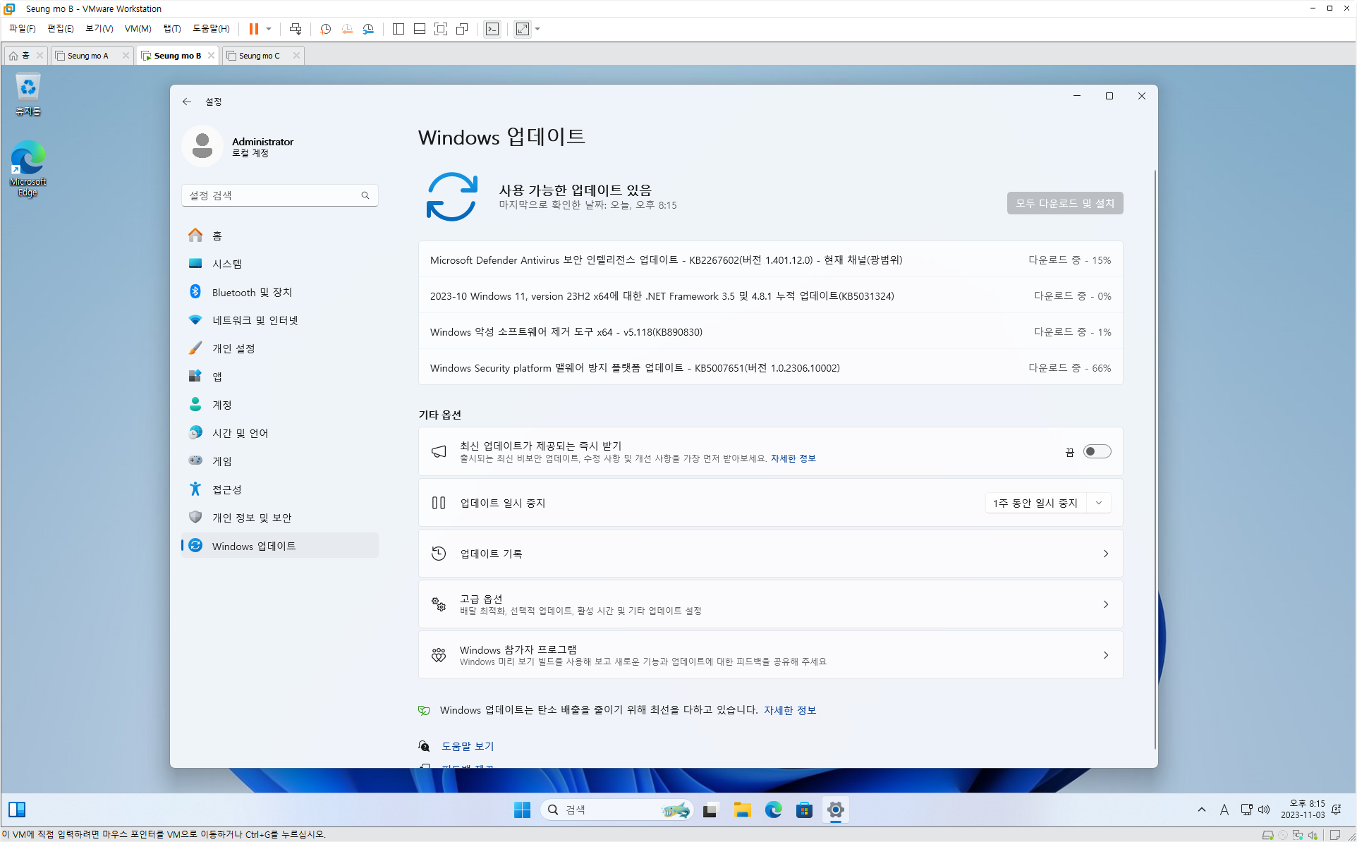 | 3번 | Windows 11 Pro 22H2 22631.1972 | 17.2GB (ISO 18.0GB) |