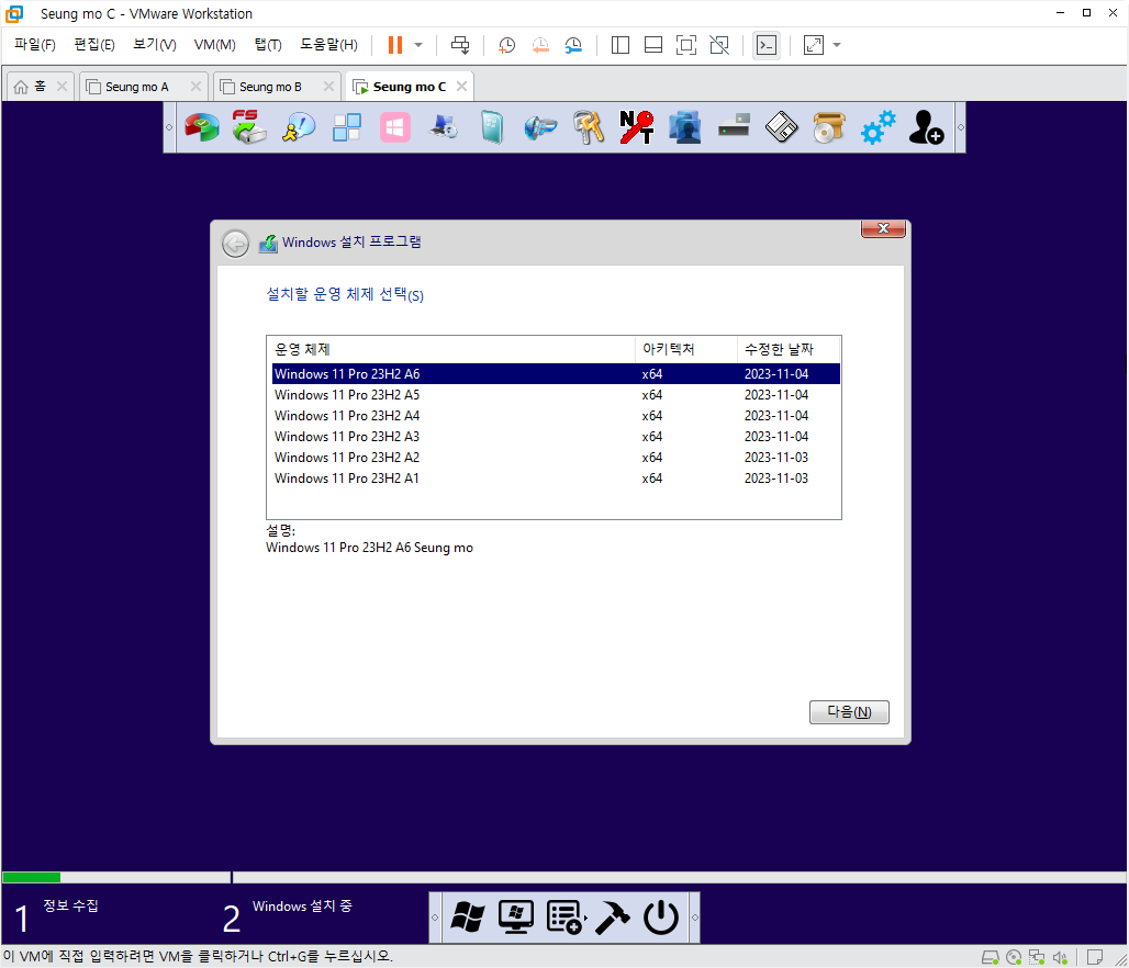 ◑ 만능 윈도우 11 Pro 23H2 22631.2506 은 6가지 버전이 있습니다.