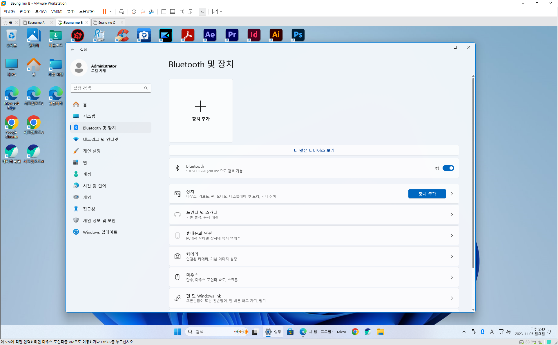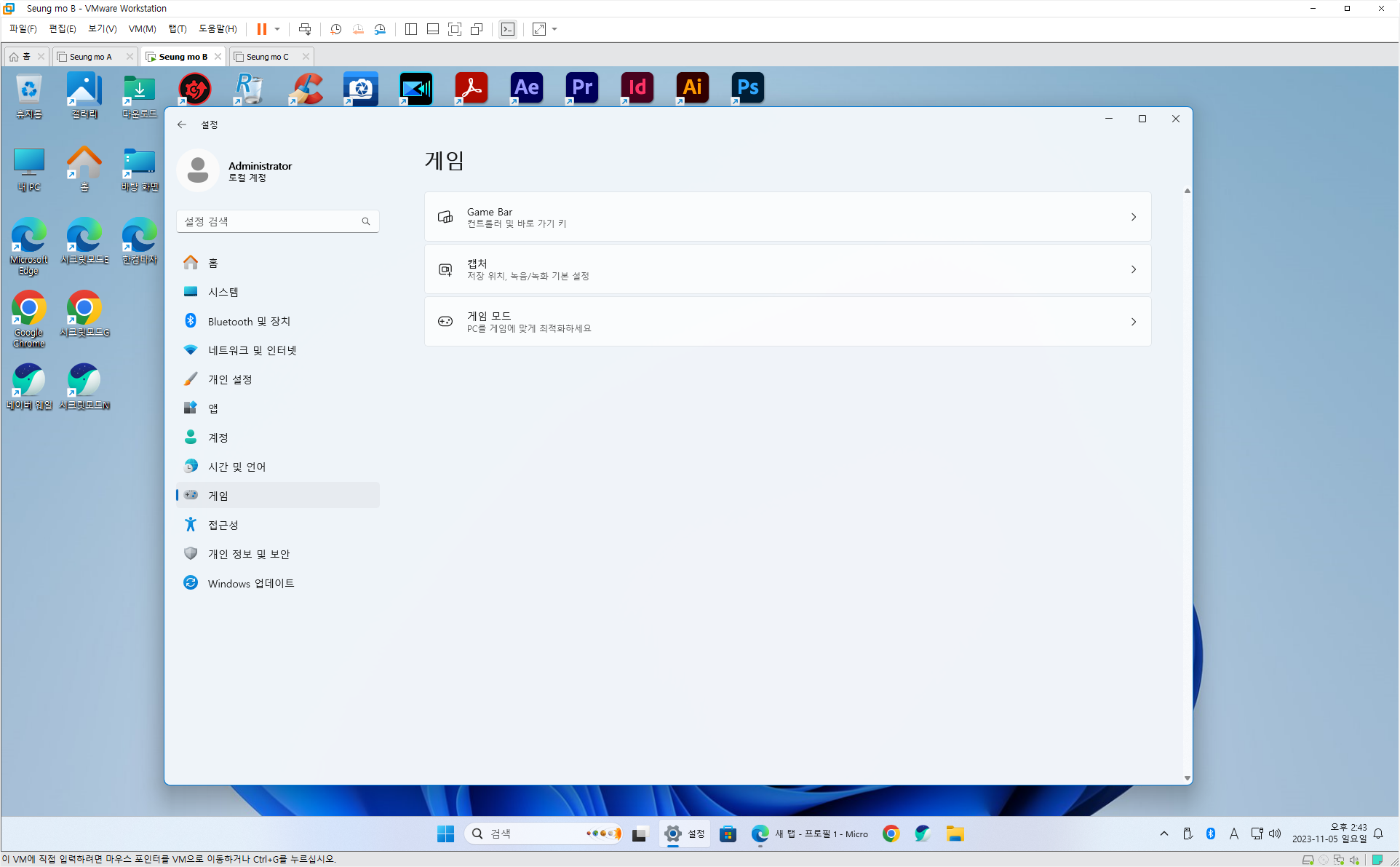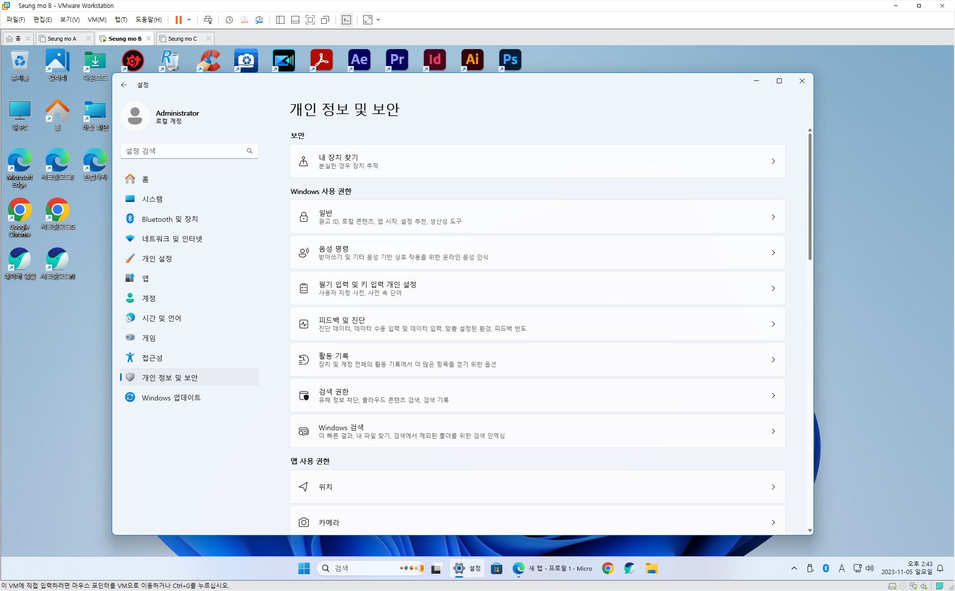 • 윈도우 11 관리자 계정 (Administrator) (관리자 계정은 노트북 지문 인식이 안됩니다)