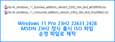 MSDN 버전 23H2 정식 버전 순수 윈도우 파일로 제작 되었습니다