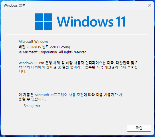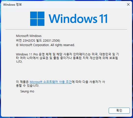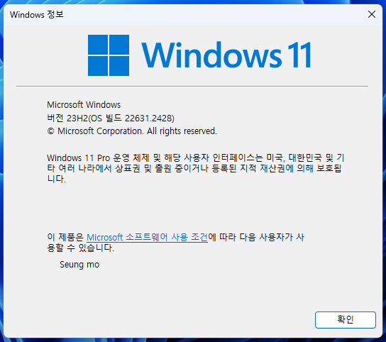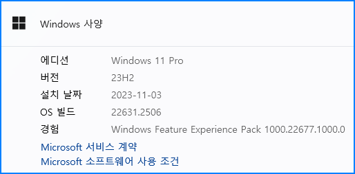 정식 버전 빌드 23H2(OS 빌드 22631.2428)
