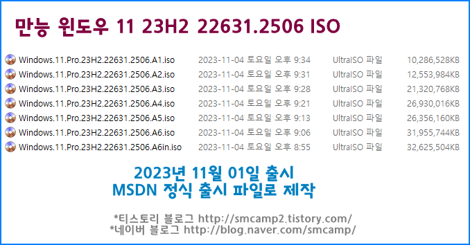 • 2023년 11월 01일 정식 출시된 MSDN 버전 23H2 정식 파일로 제작 되었습니다