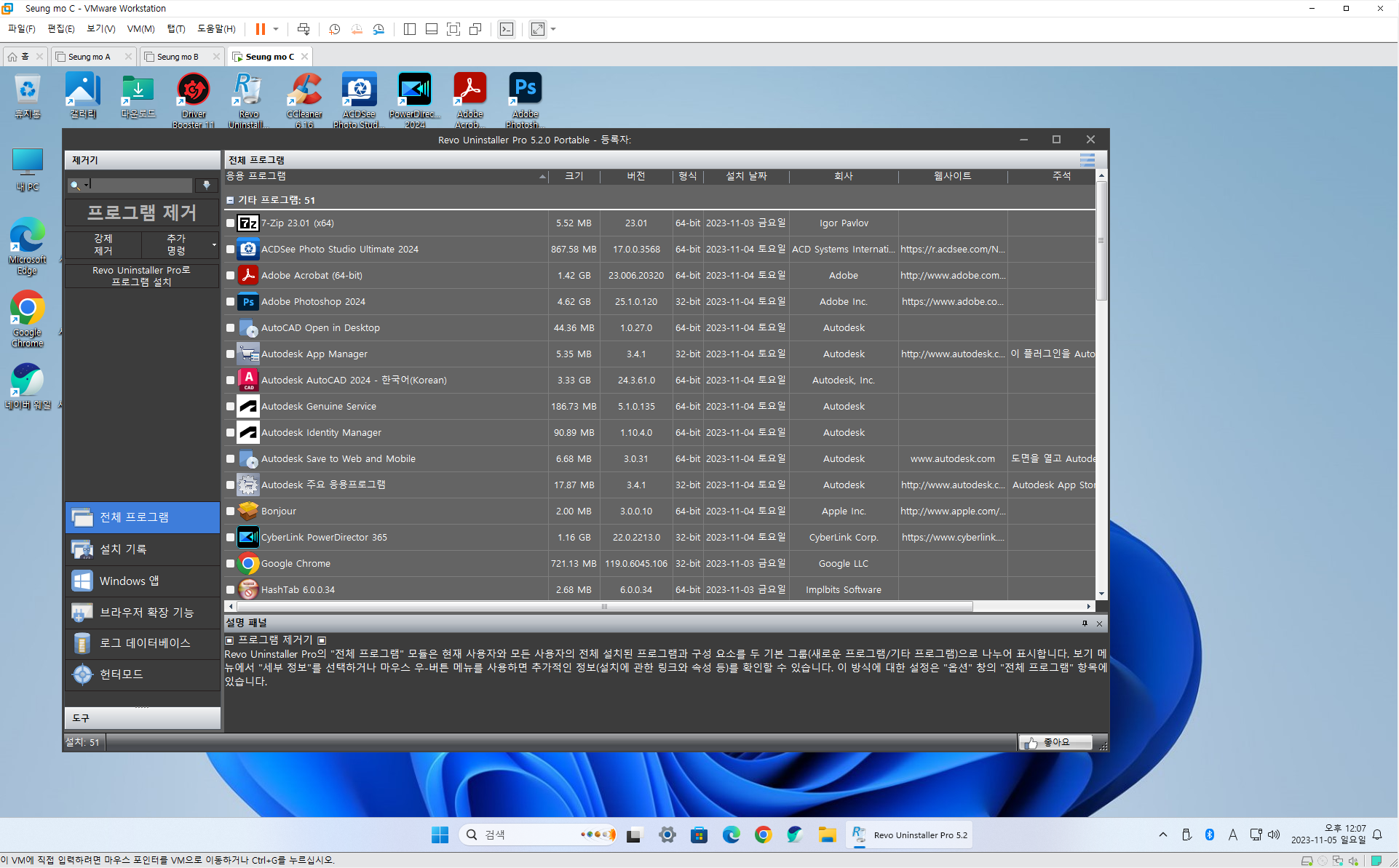 | 5번 | Windows 11 Pro 22H2 22631.1972 | 21.6GB (ISO 22.5GB) |