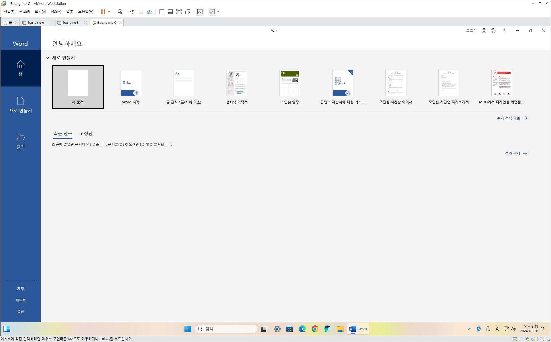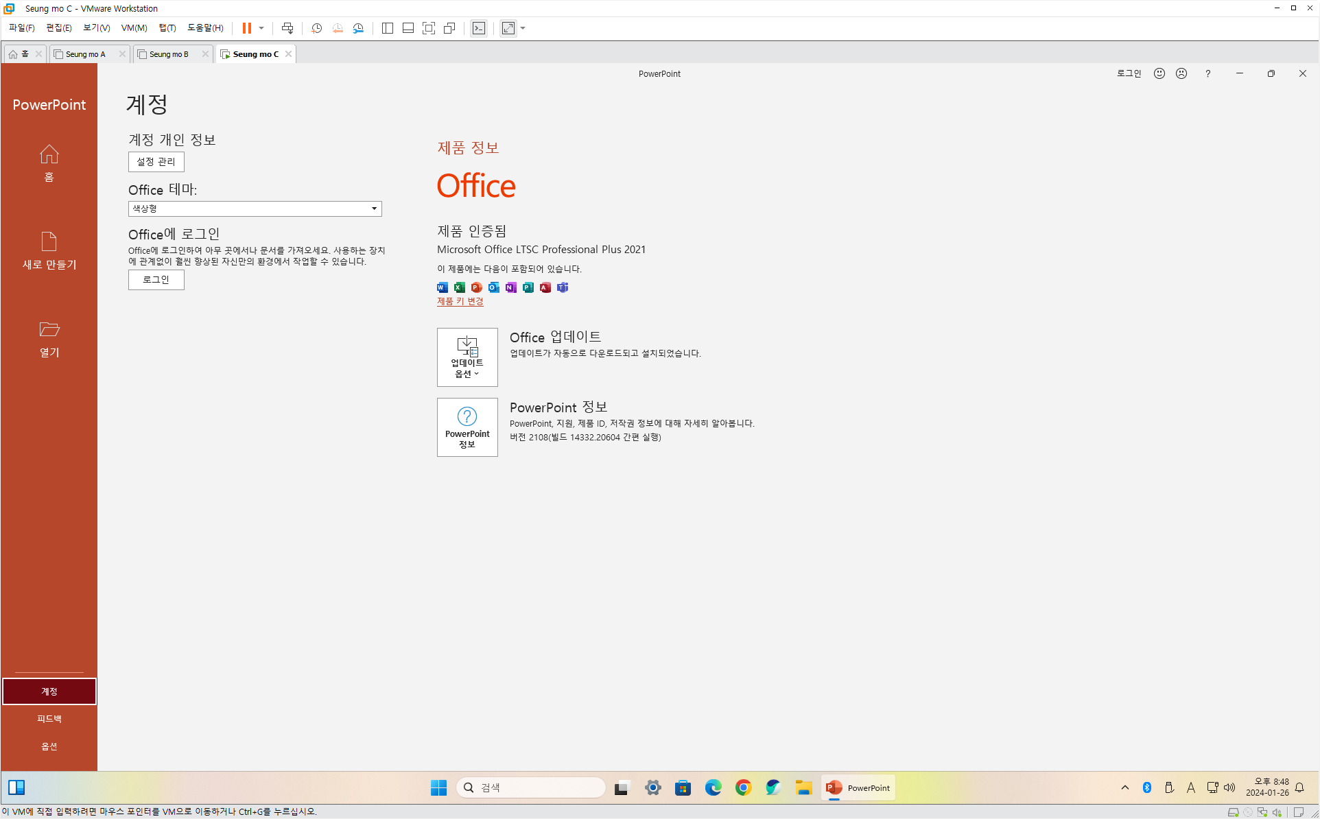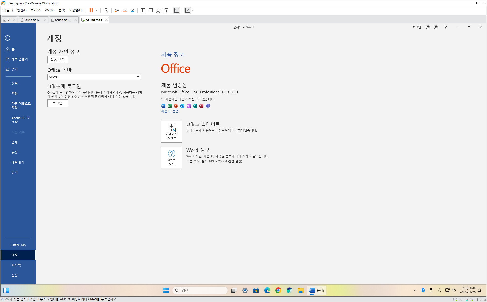 - MS 계정이 아닌 로컬 계정으로 설치 되었습니다