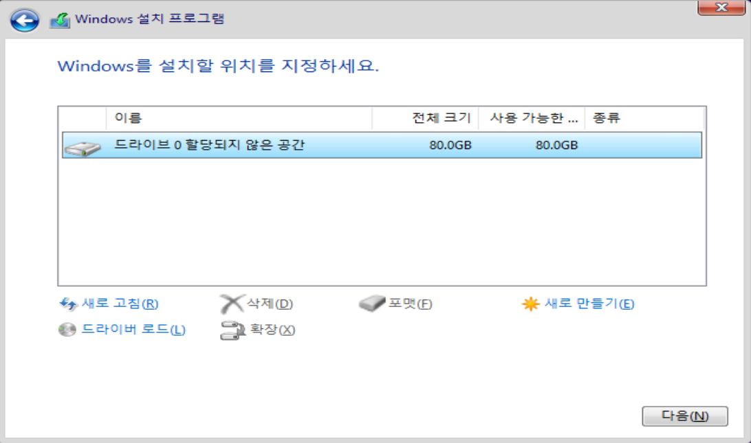 -윈도우 기본 설치와 동일 합니다.