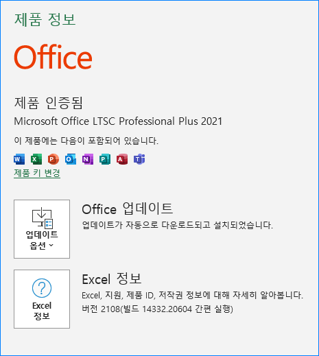 -오피스 버전 2108 (빌드 14332.20582) / Excel 2108 v16.0.14332.20579 64비트