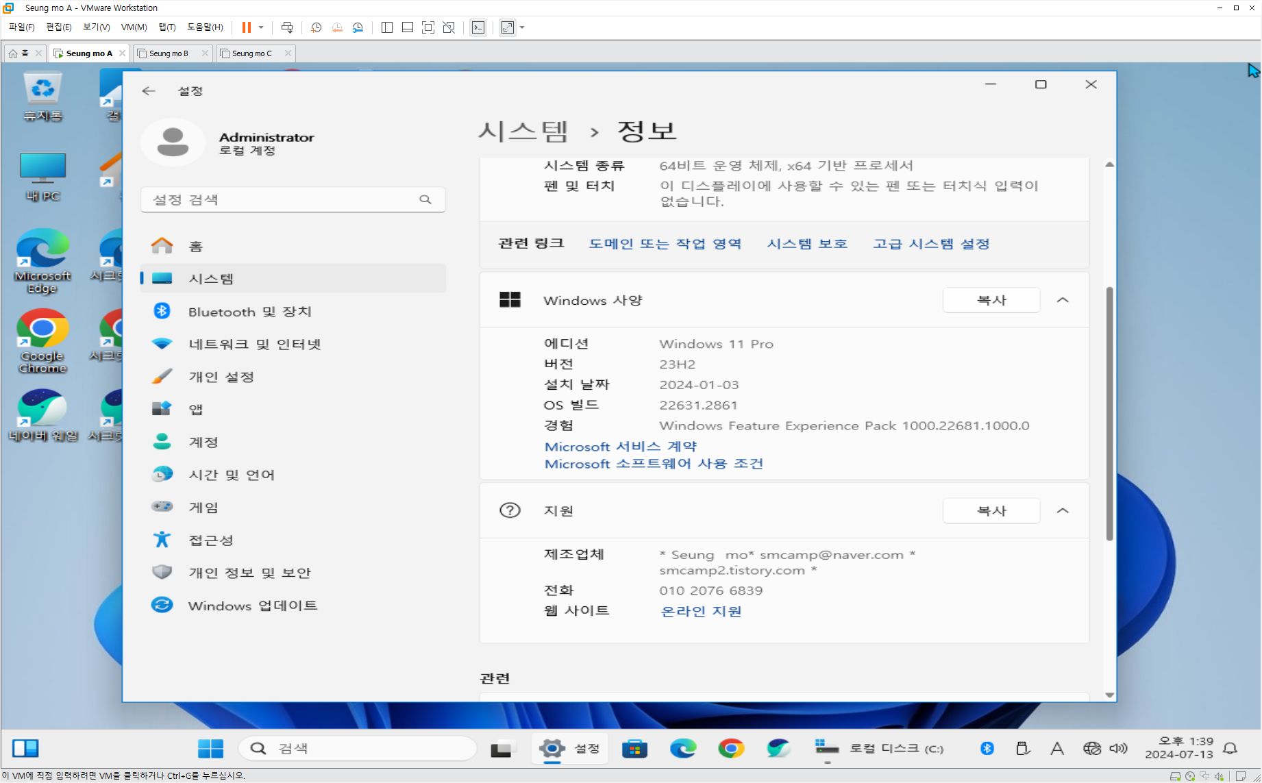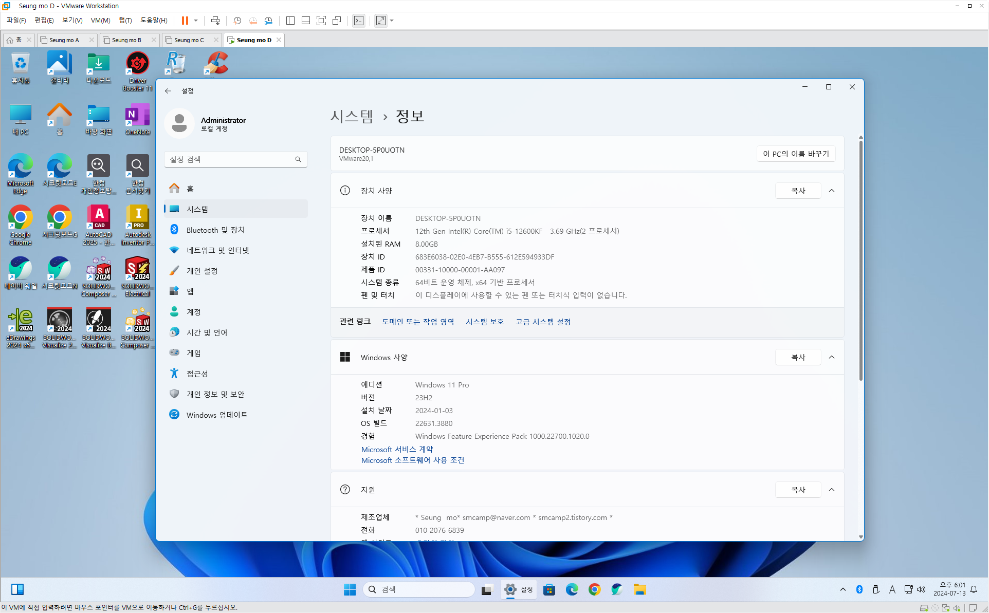 | 6in번 | Windows 11 Pro 22H2 22631.1972 | 27.2GB (ISO 28.1GB) |