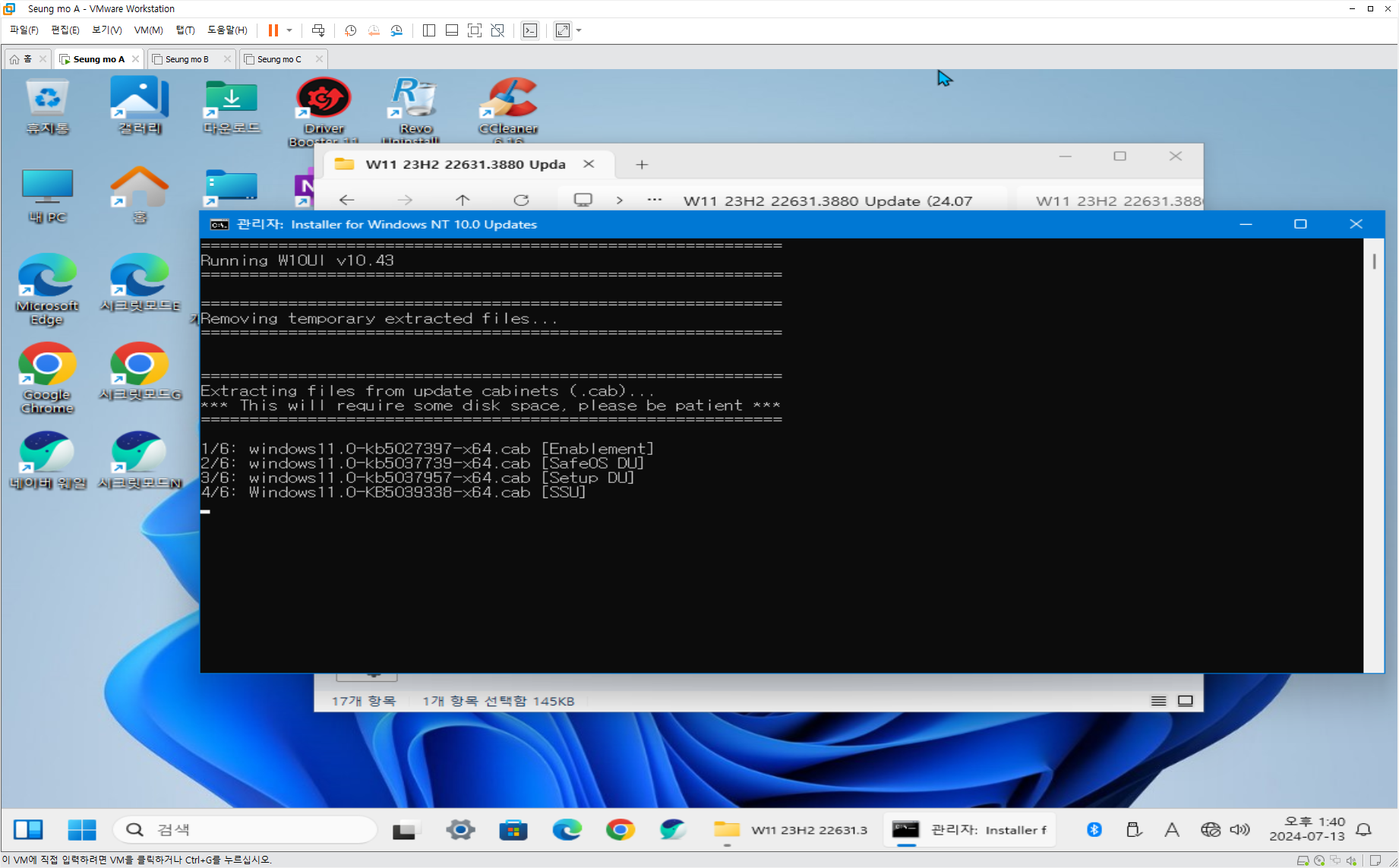 *2024년 07월 09일 배포된 누적 업데이트 수동 설치 되었습니다
