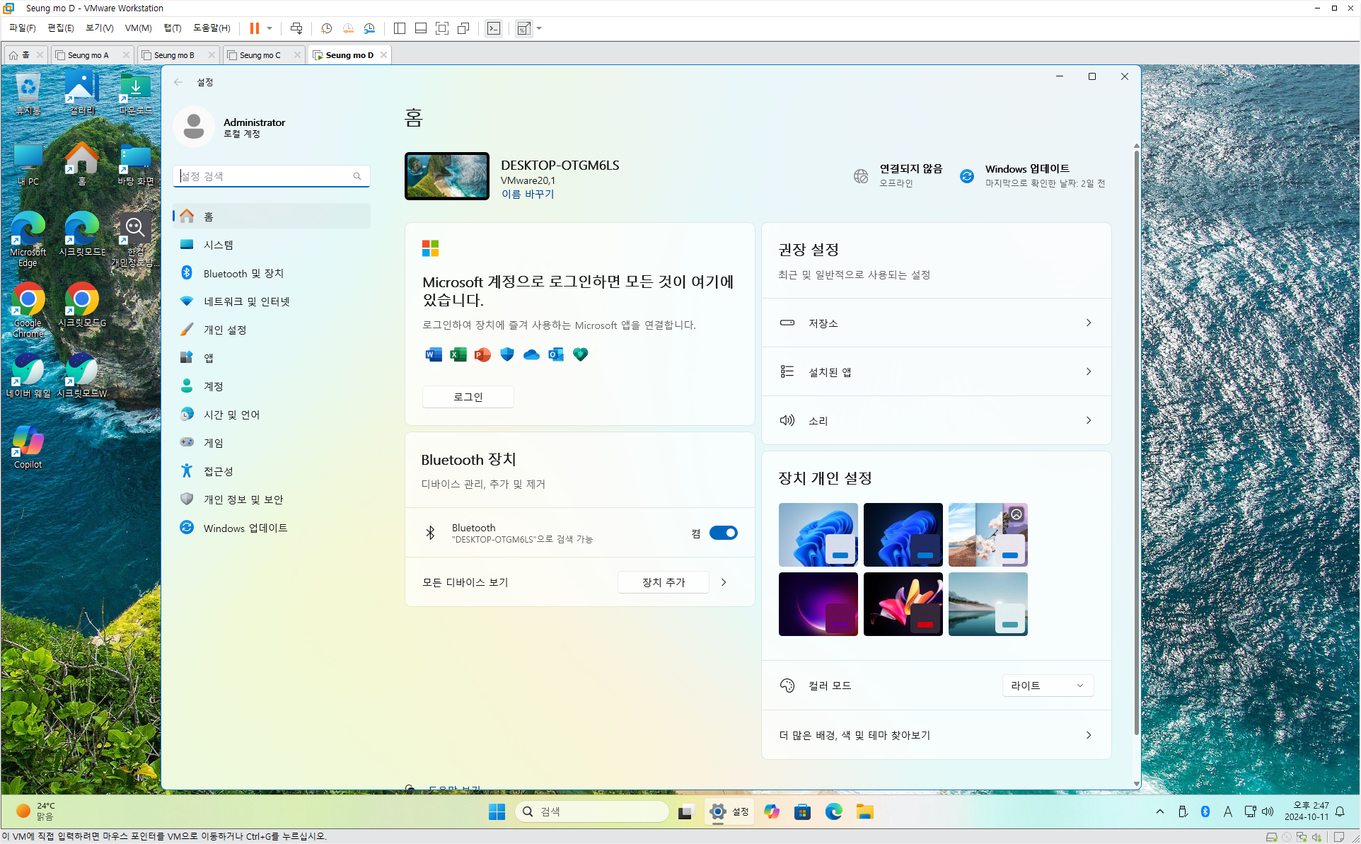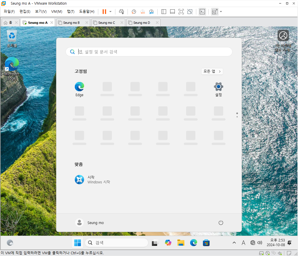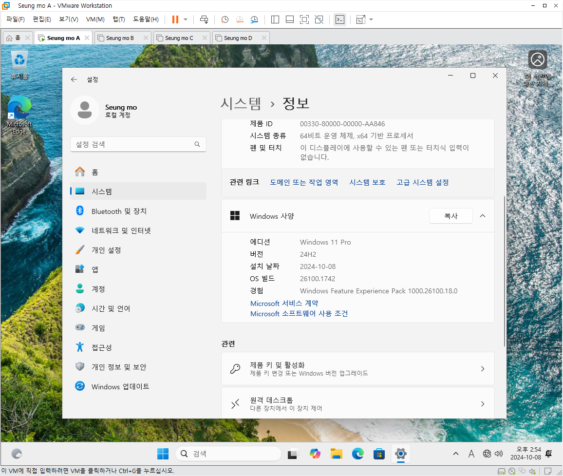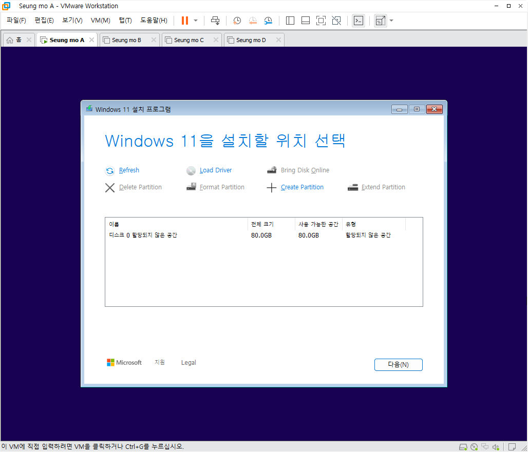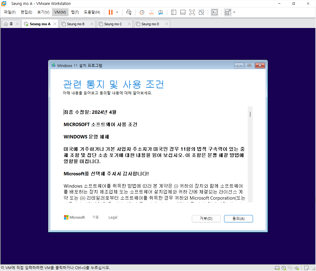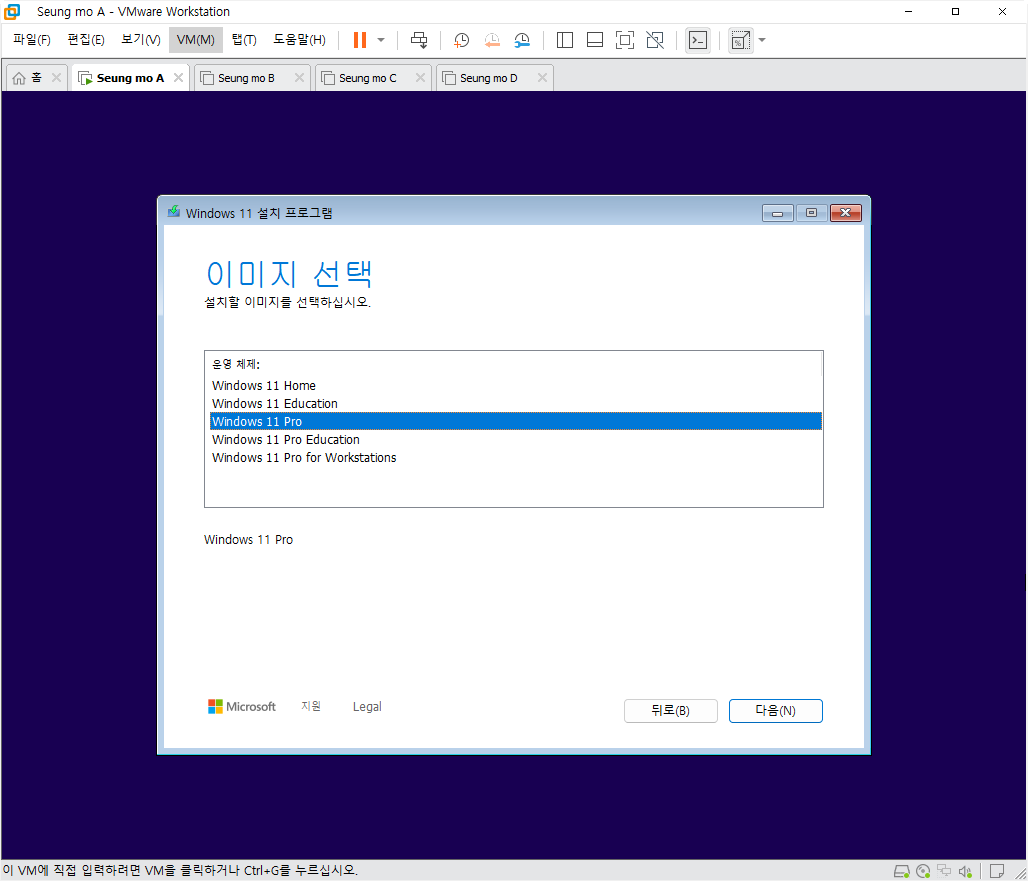 만능 윈도우 11 24H2 3-4번을 VMware 설치 합니다