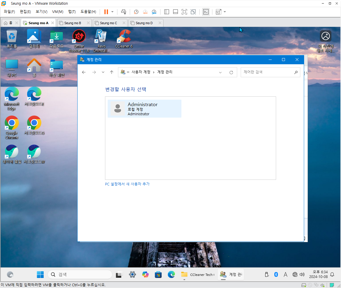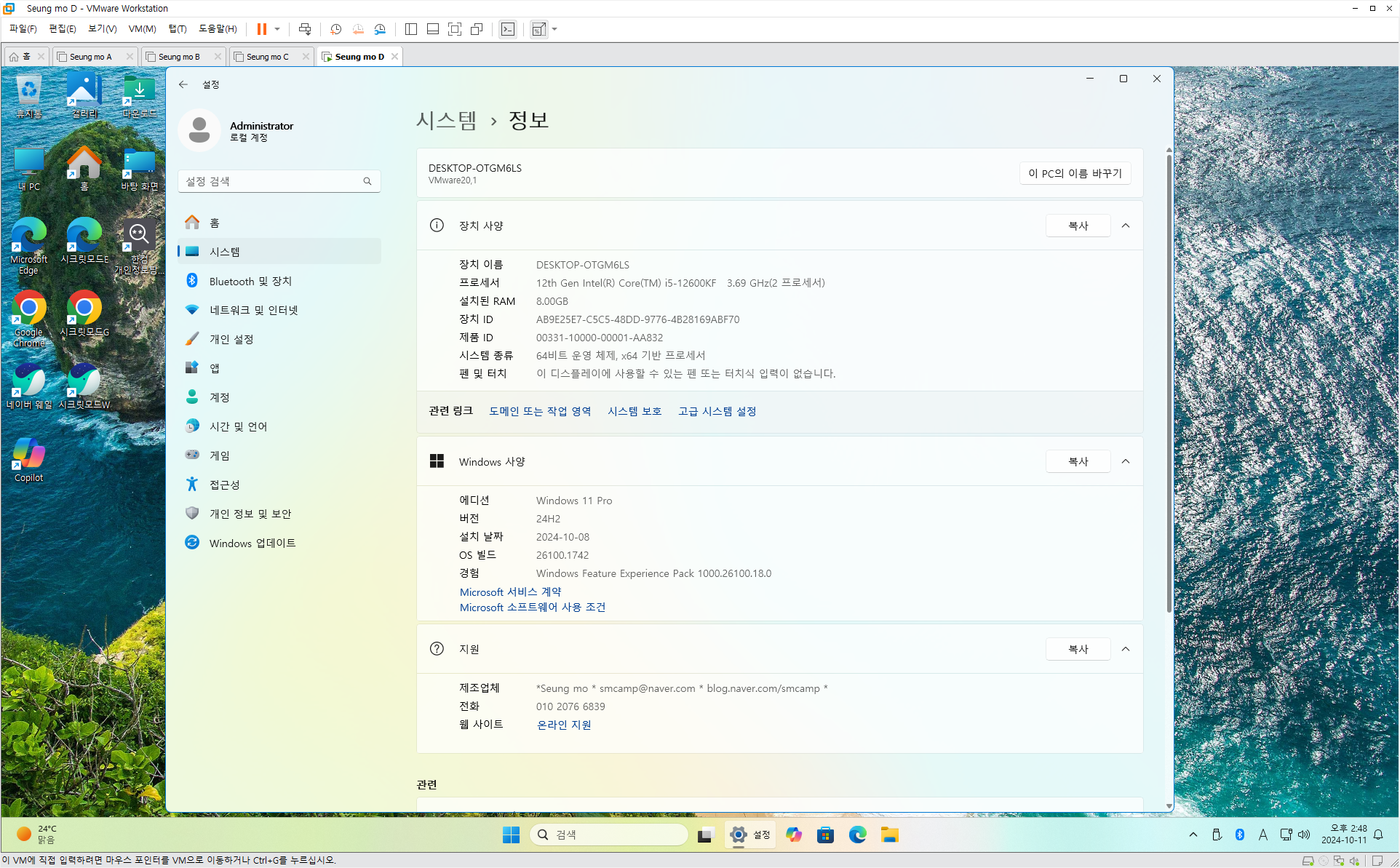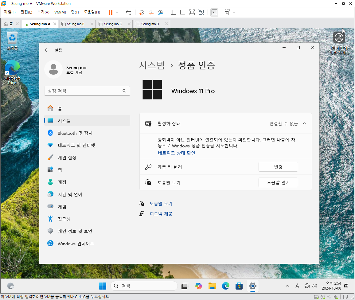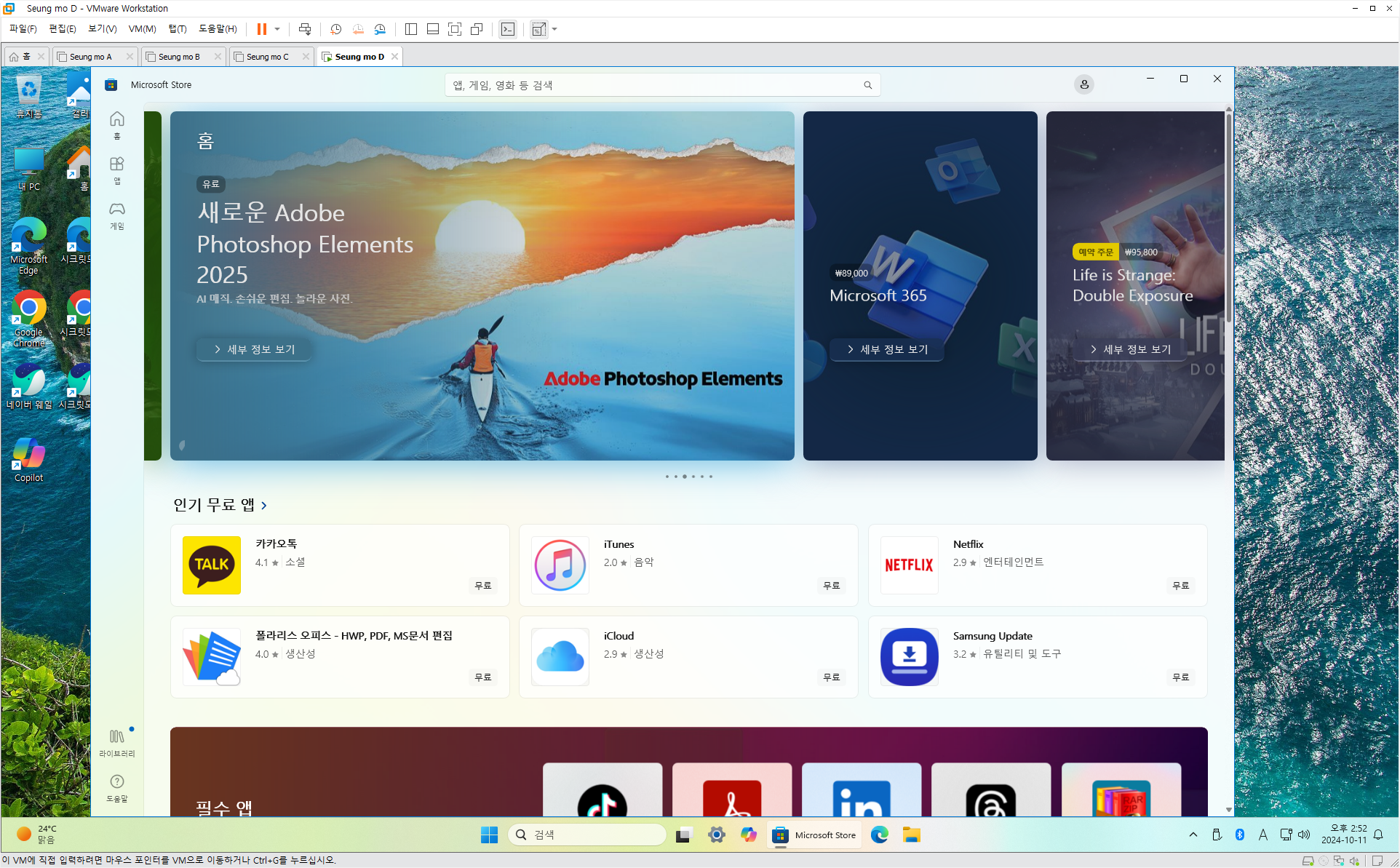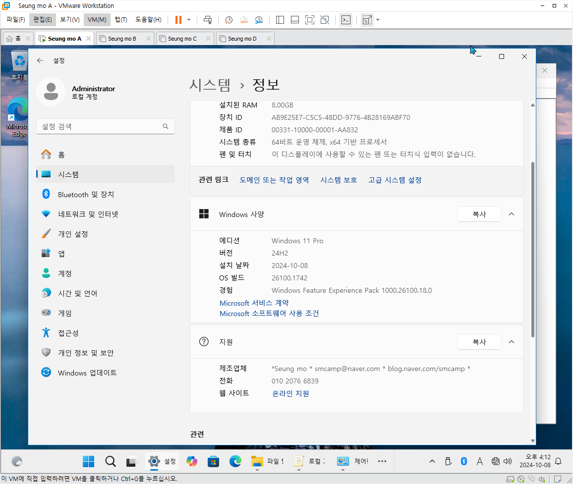 만능 윈도우 11 24H2 3-4번을 VMware 설치 합니다
