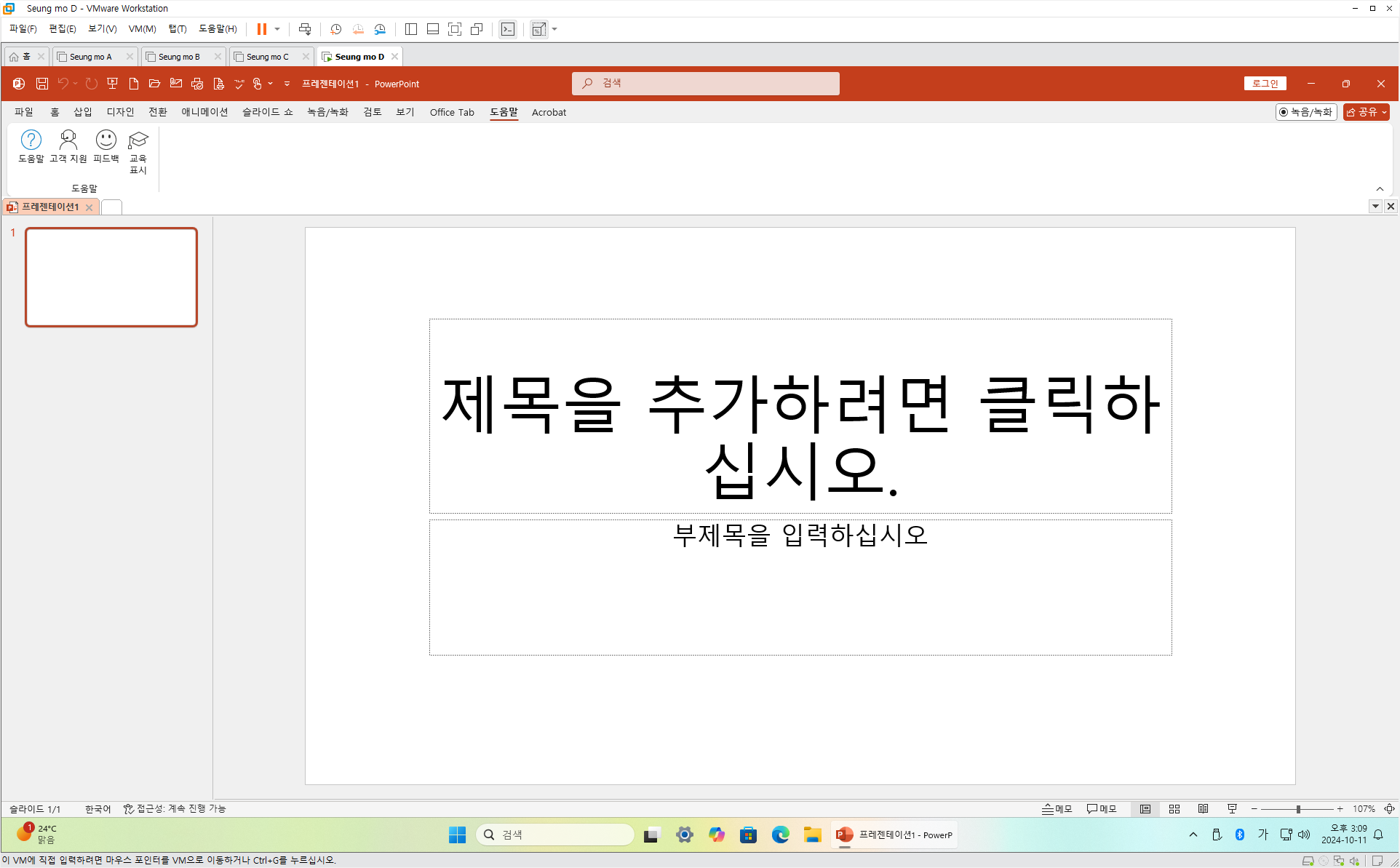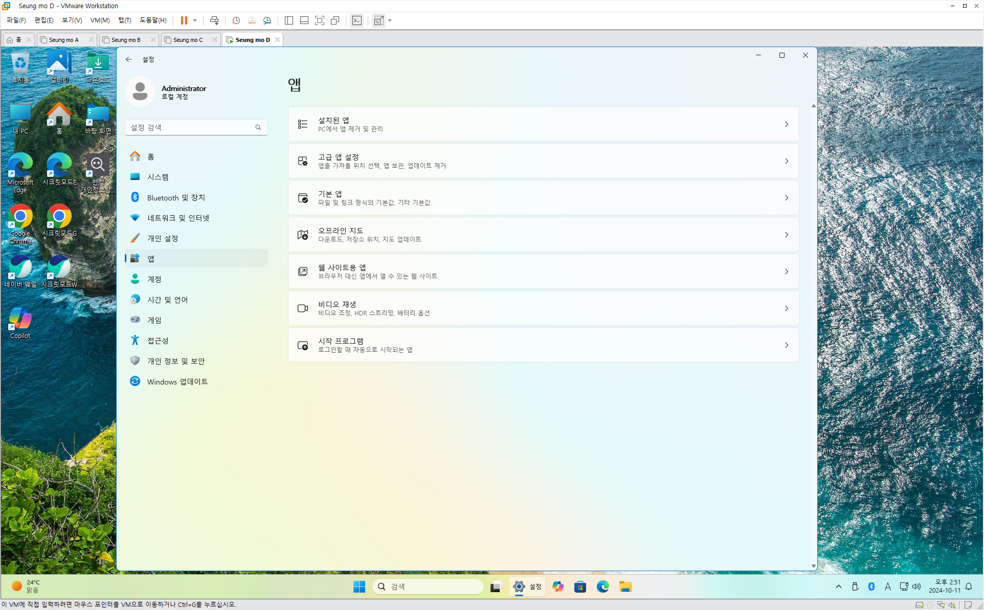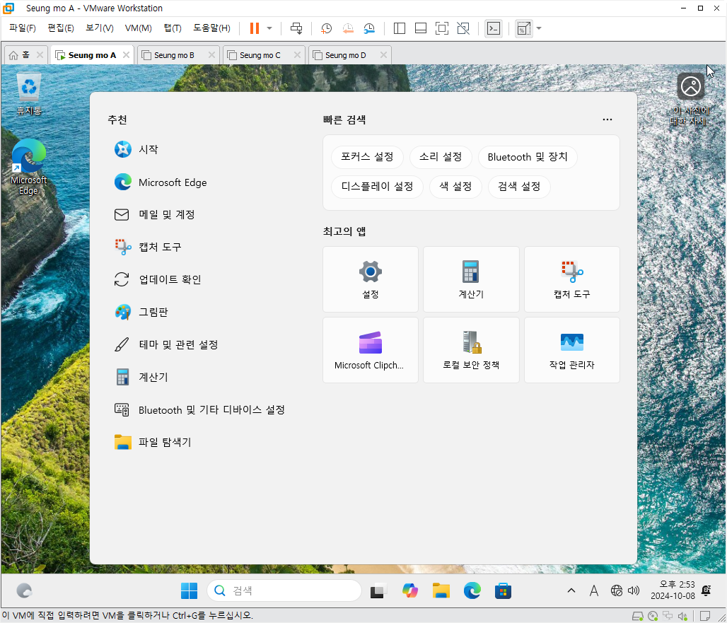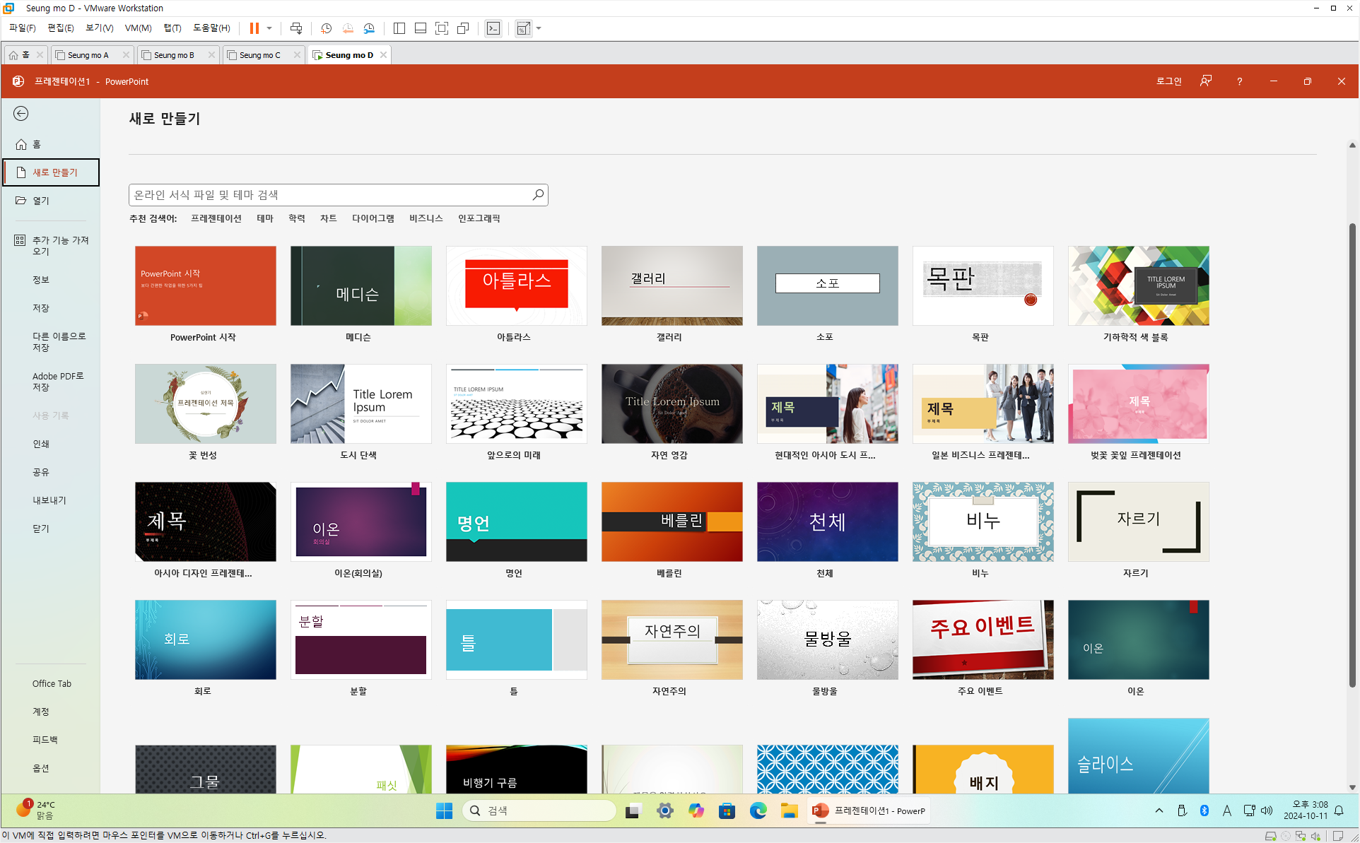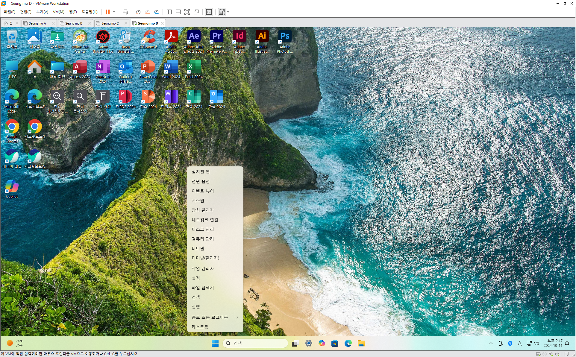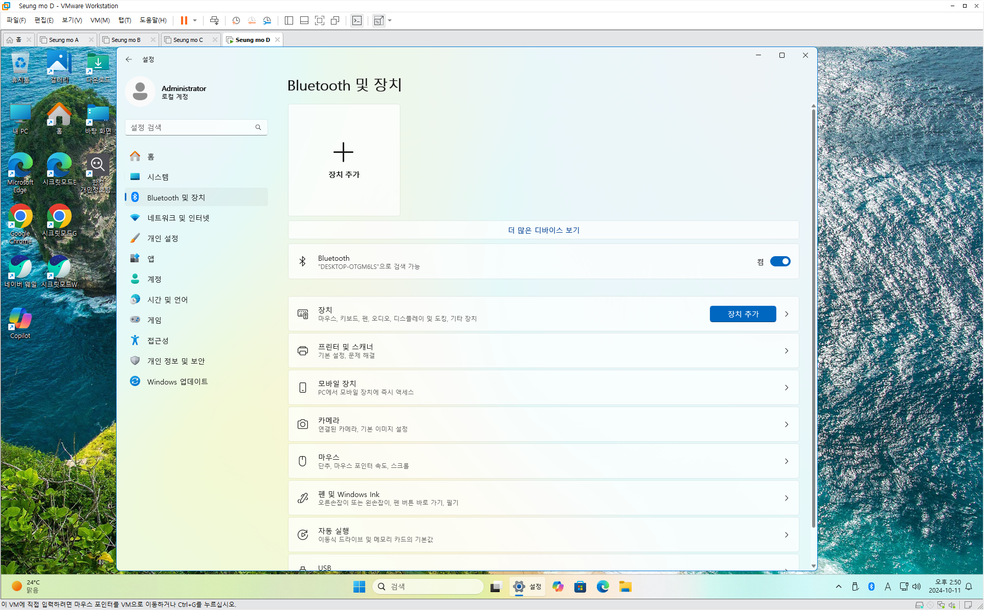 만능 윈도우 11 24H2 3-4번을 VMware 설치 합니다