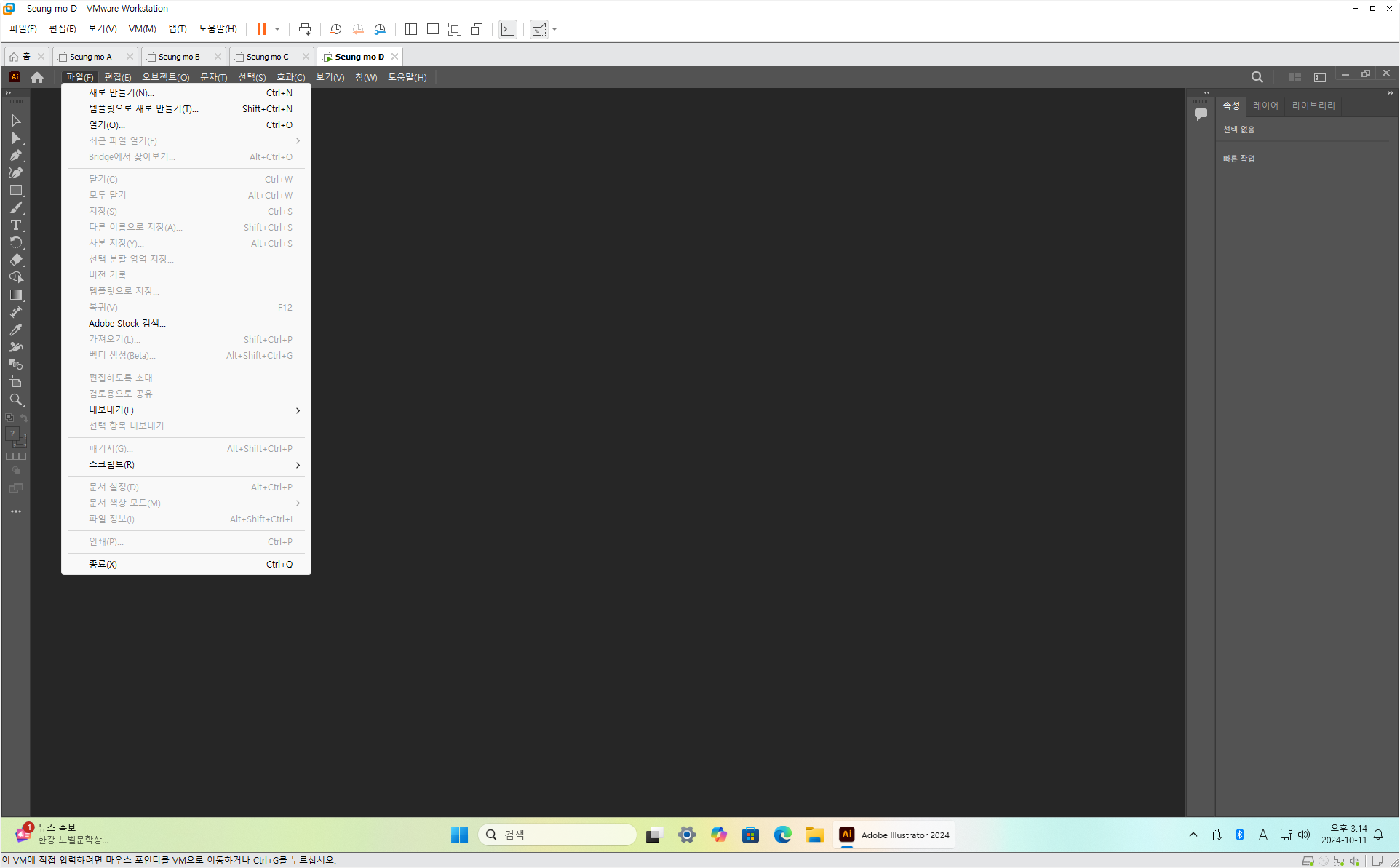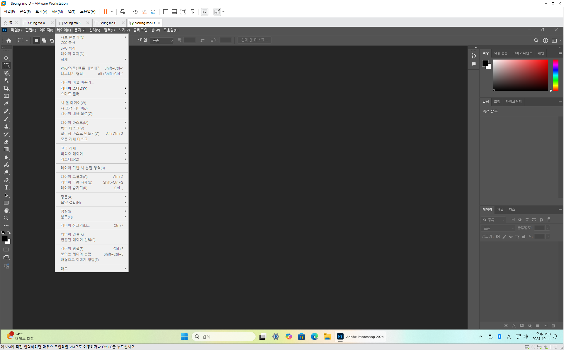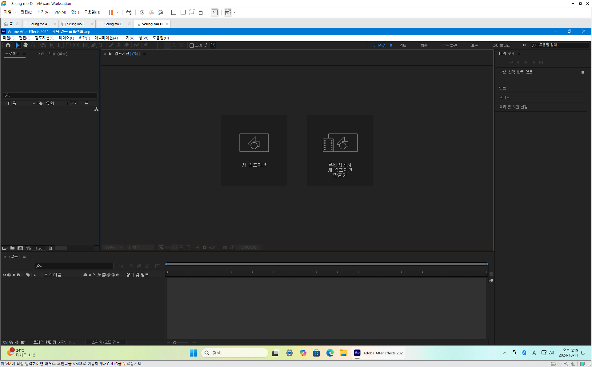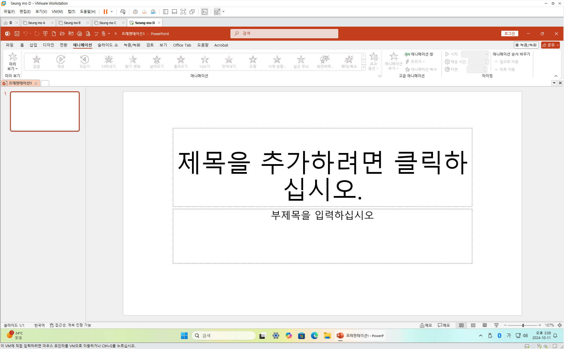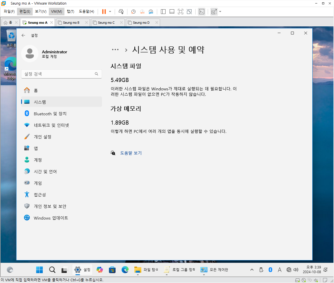 만능 윈도우 11 24H2 3-4번을 VMware 설치 합니다