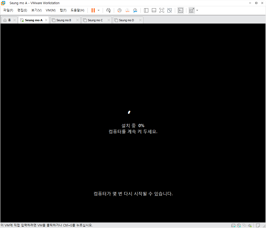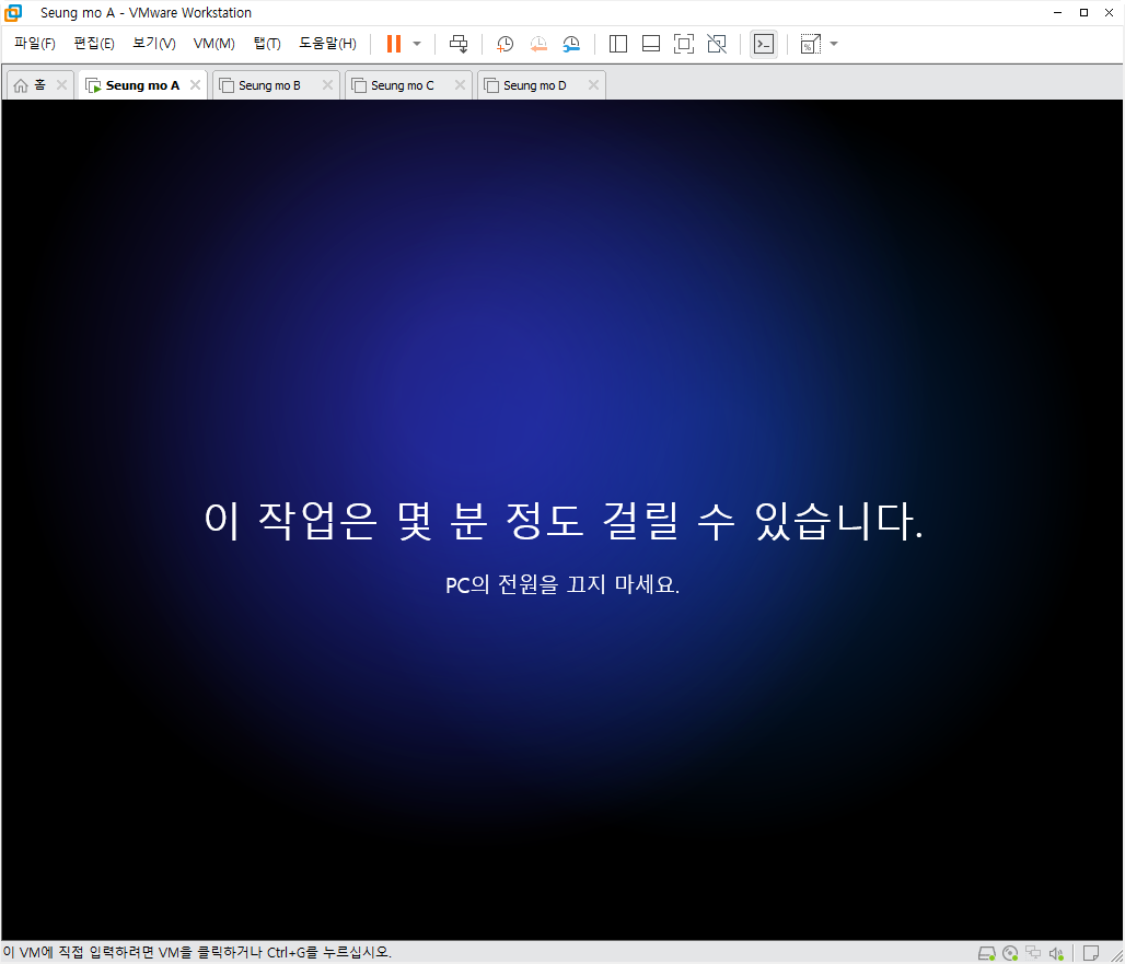 설치중 복사후 첫부팅이 되면 설치가 완료 되고 5분~15분 이내에 설치가 모두 완료 됩니다.