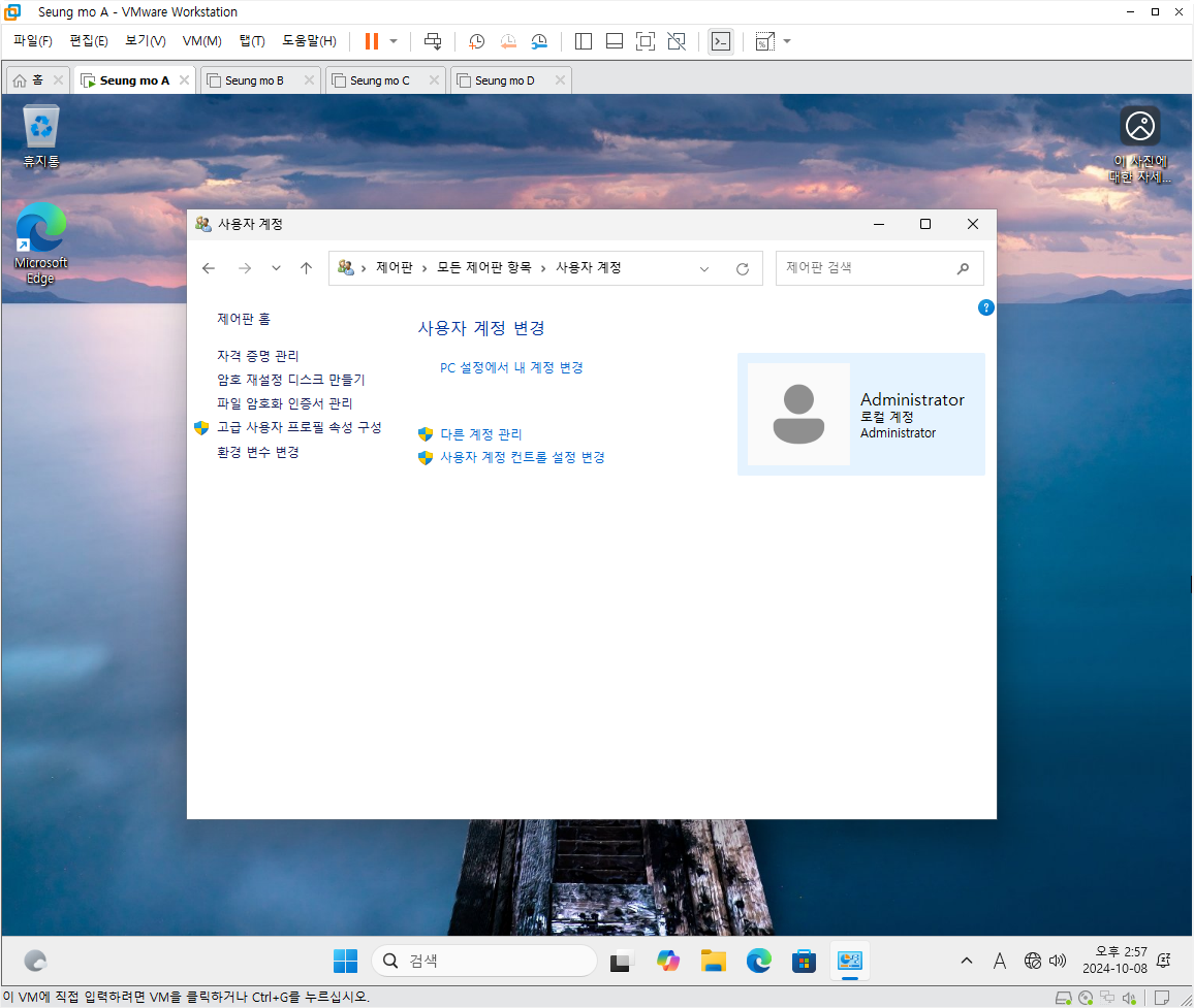 • 윈도우 11 관리자 계정 (Administrator) (관리자 계정은 노트북 지문 인식이 안됩니다)
