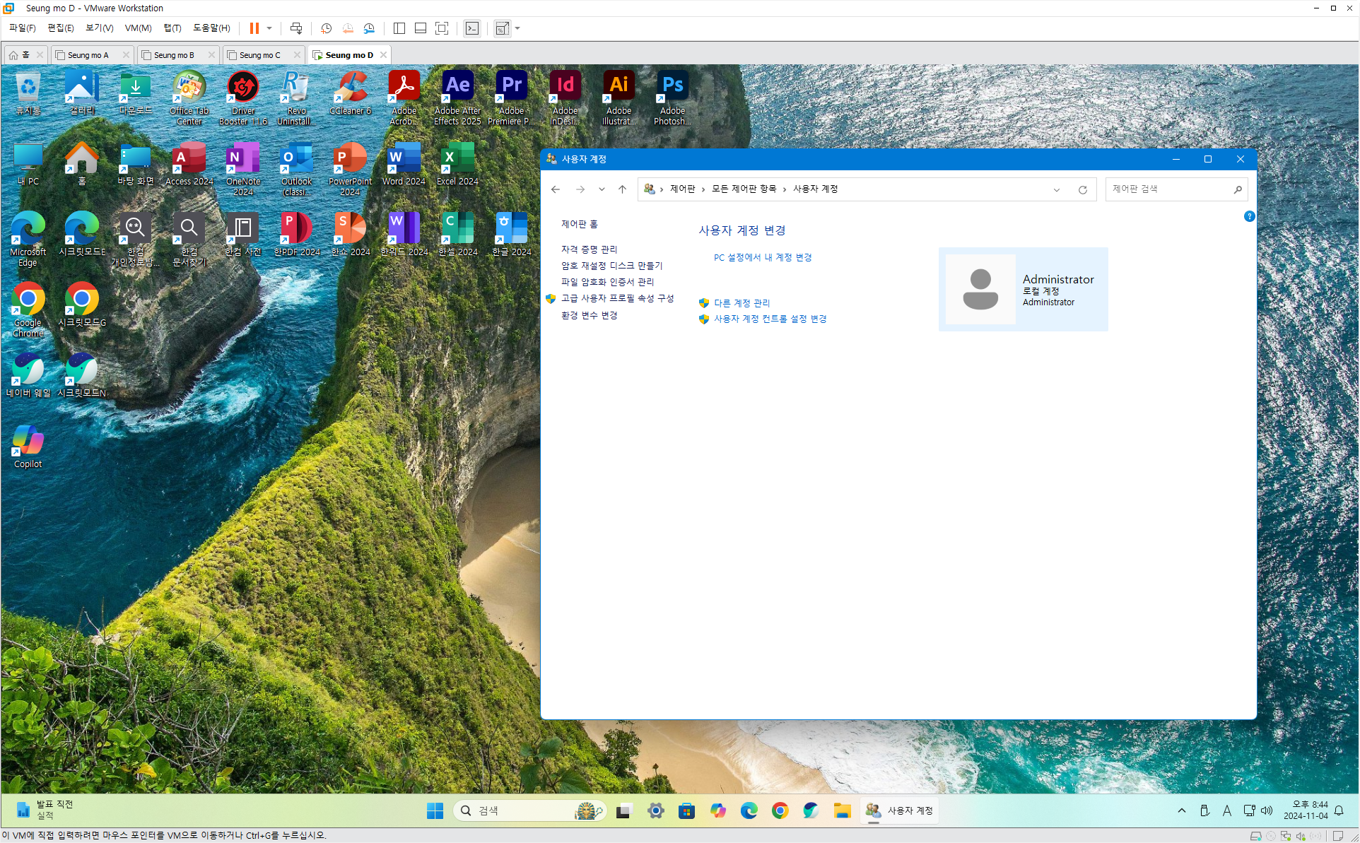 • 윈도우 11 관리자 계정 (Administrator) (관리자 계정은 노트북 지문 인식이 안됩니다)