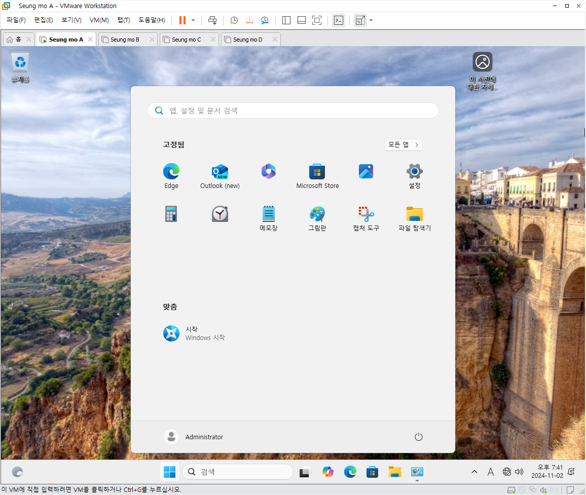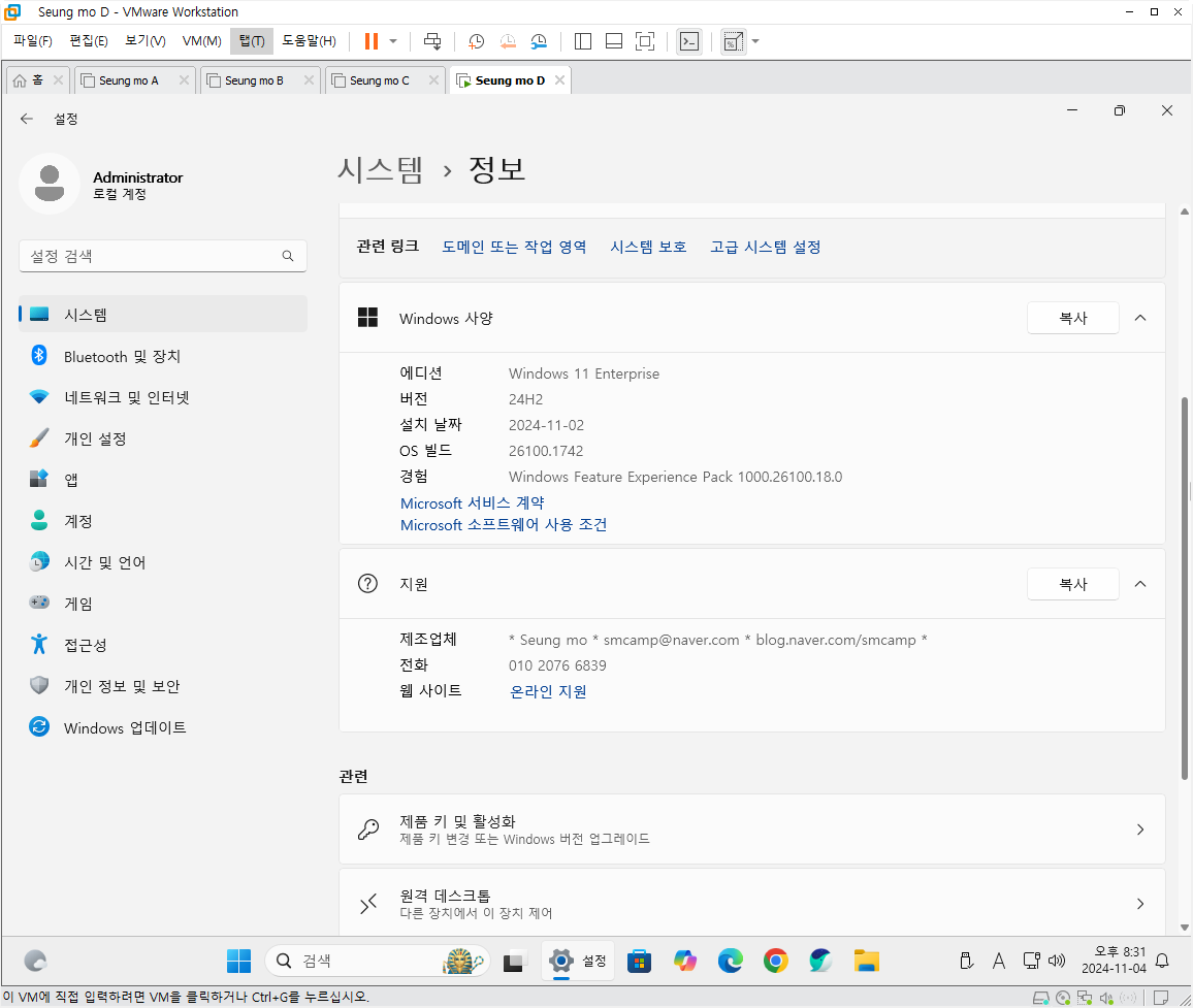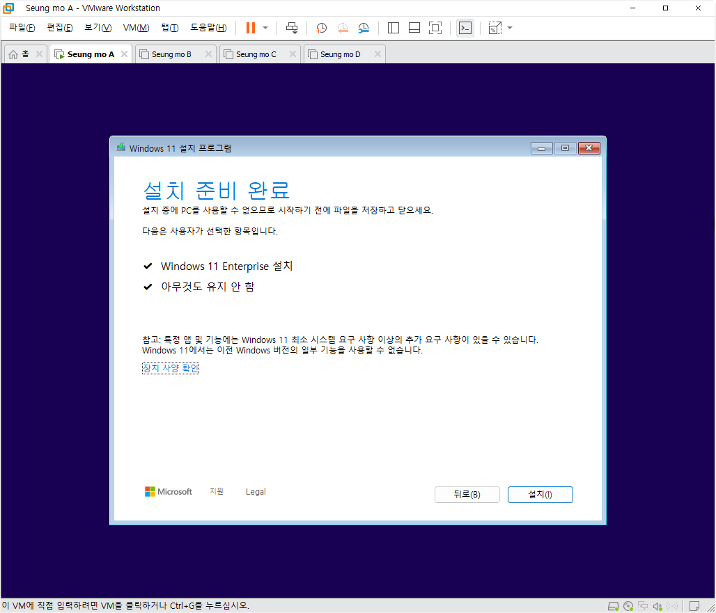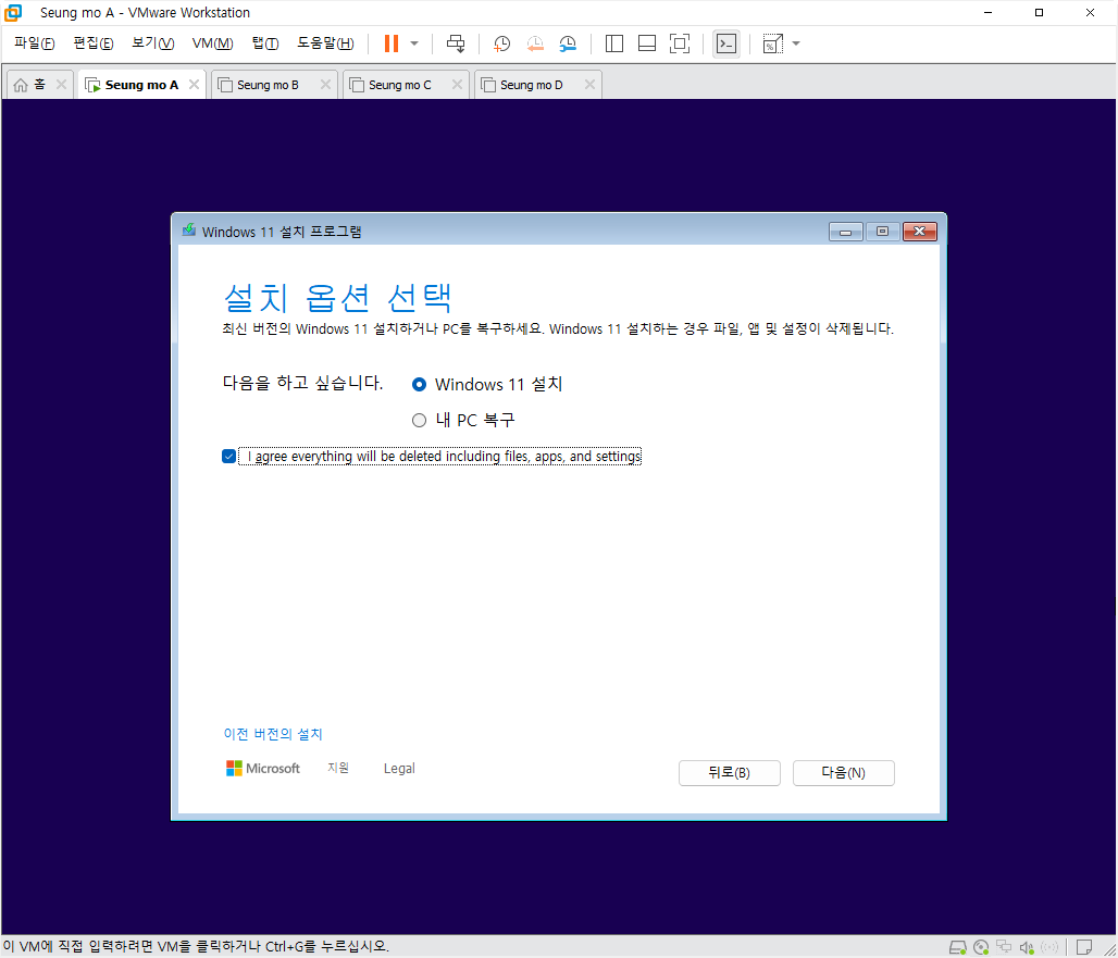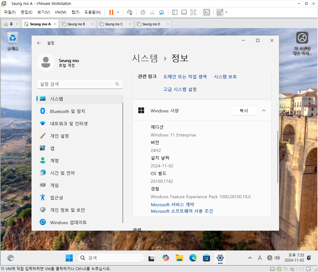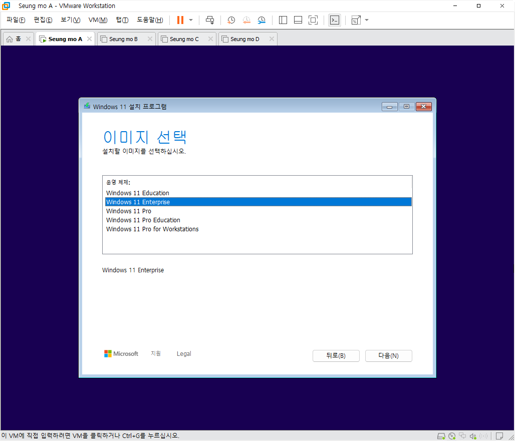 만능 윈도우 11 Enterprise 24H2 7-4번을 VMware 설치 합니다