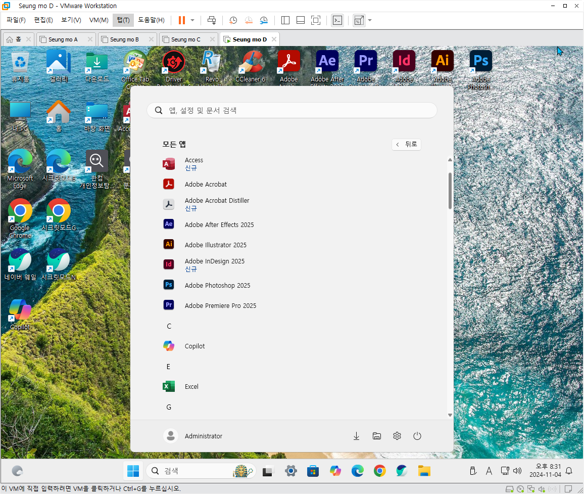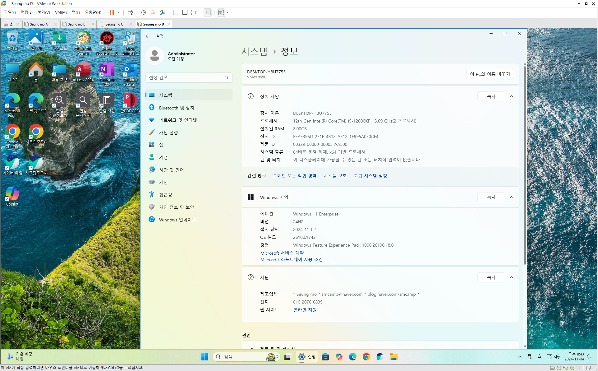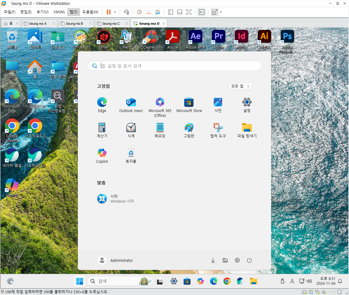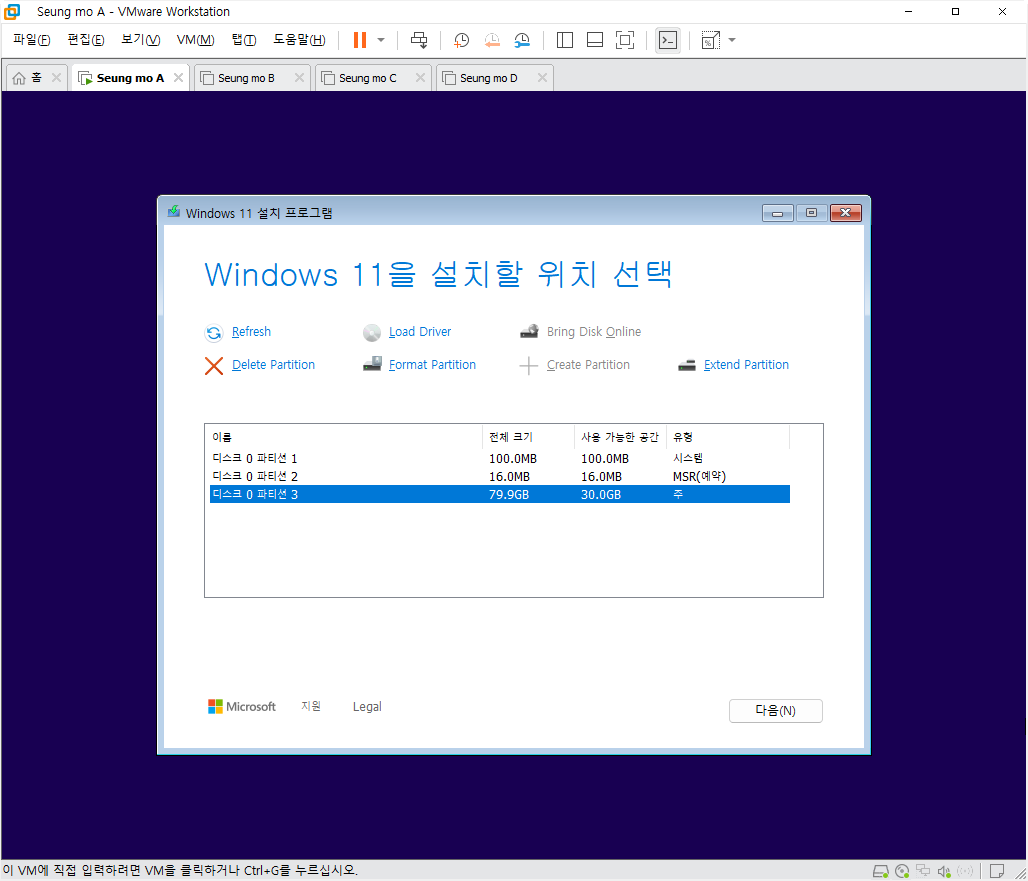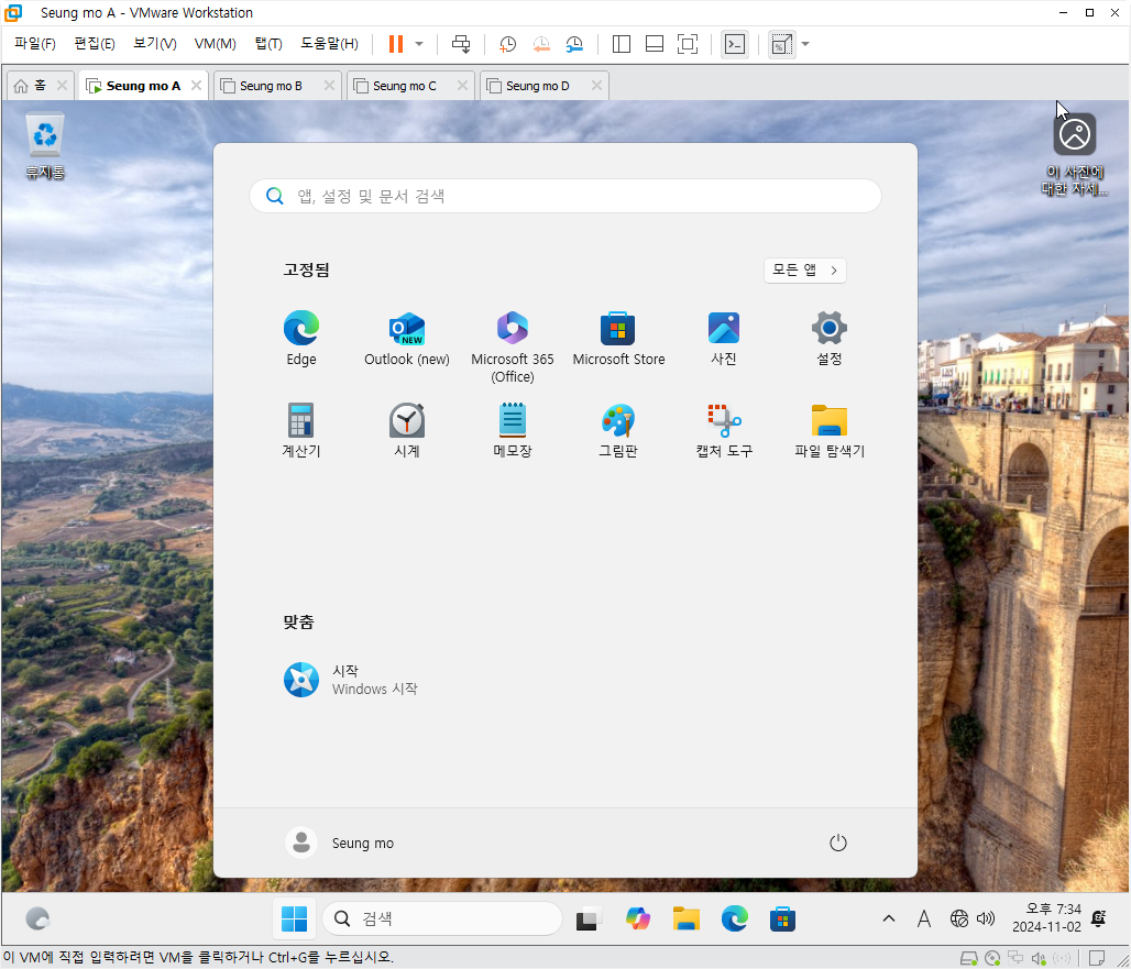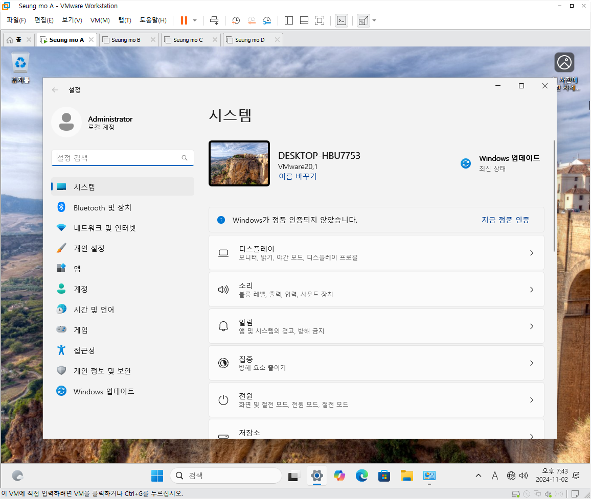 만능 윈도우 11 Enterprise 24H2 7-4번을 VMware 설치 합니다